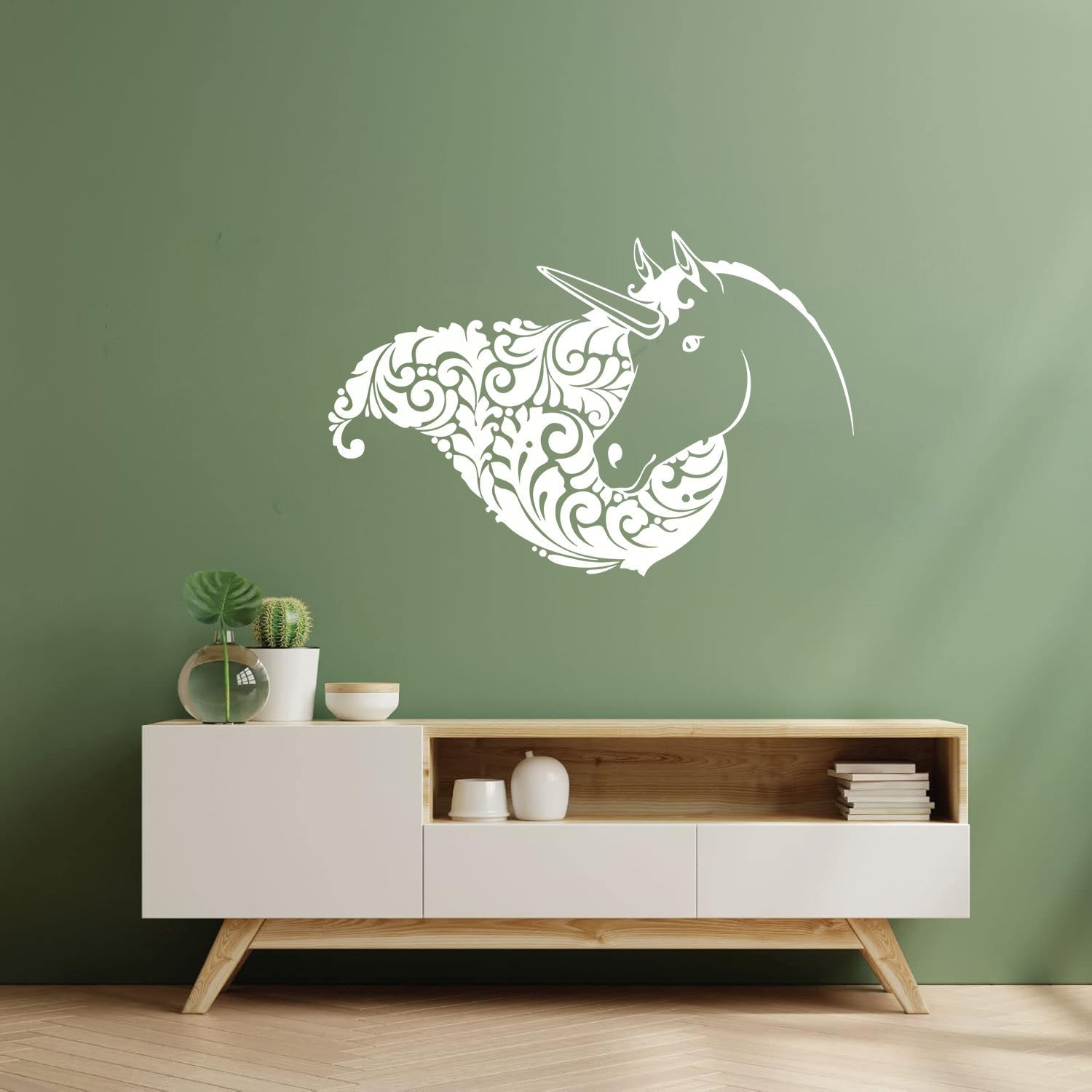 Fine Carving Decals Unicorn Head Girl Fantasy Room Wall Beautification