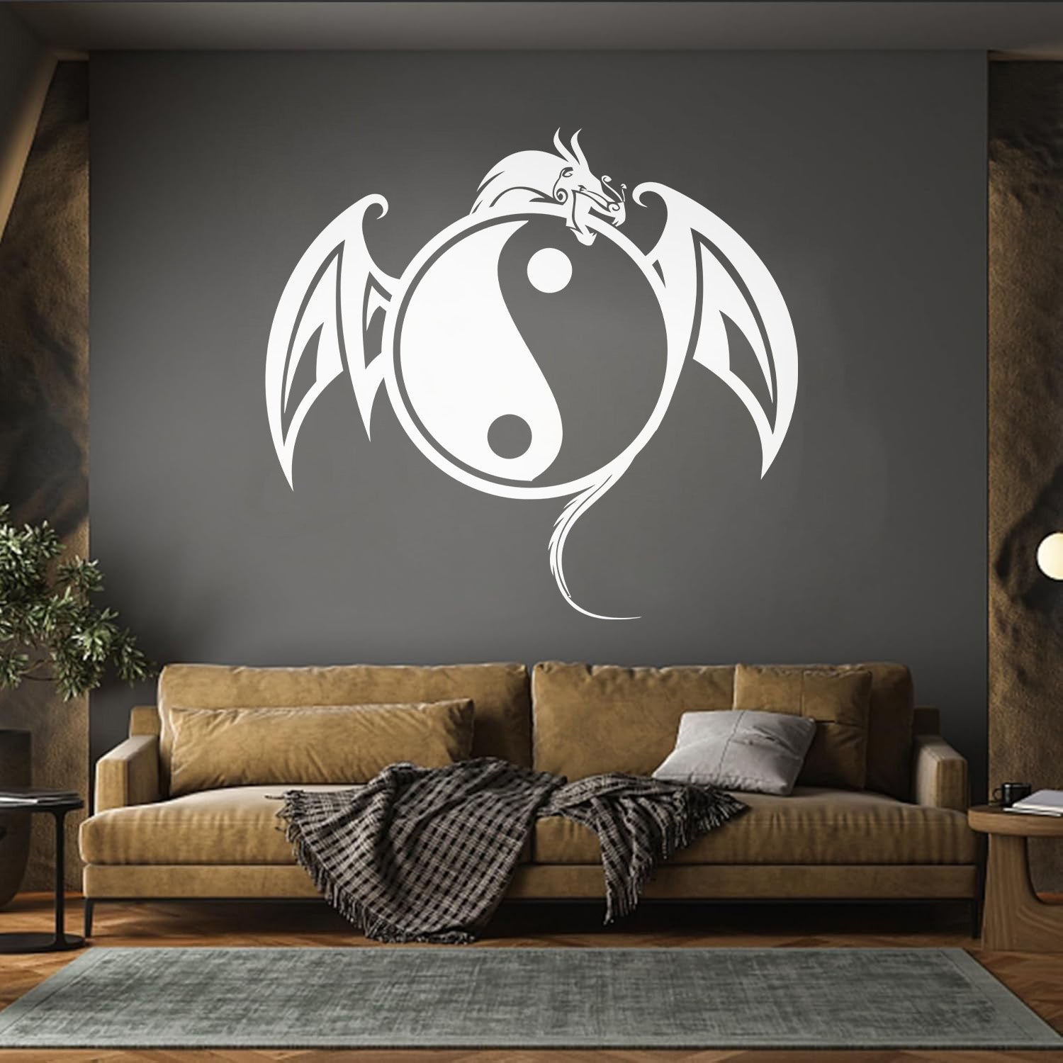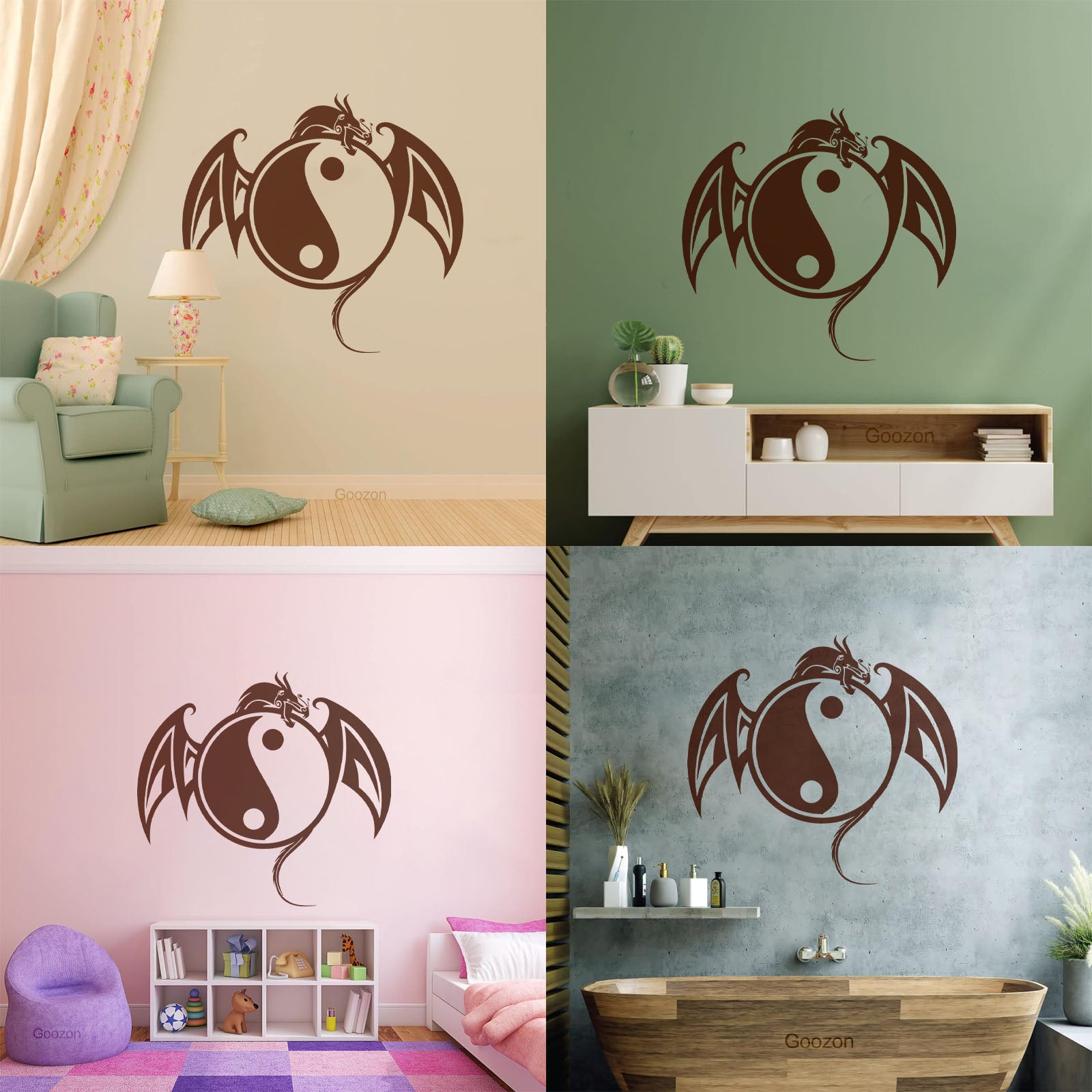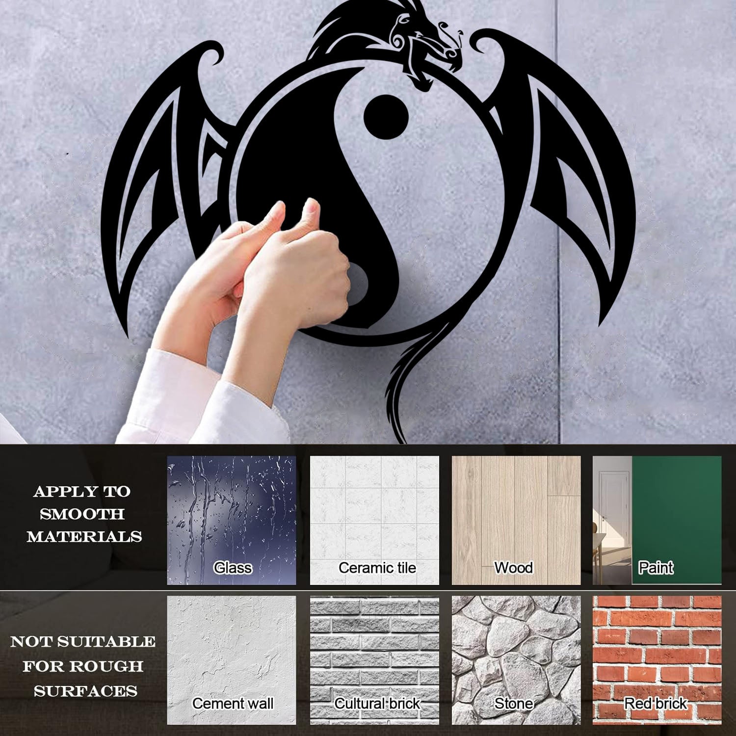 Vinyl Wall Stickers Yin Yang Symbol Asian Dragon Fantasy Animal Self Adhesive