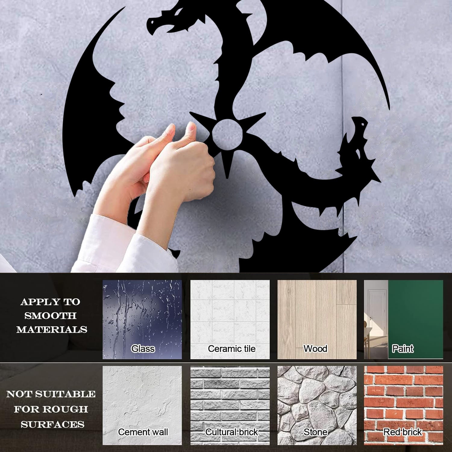 Gently press the decal area to secure it firmly to the wall.