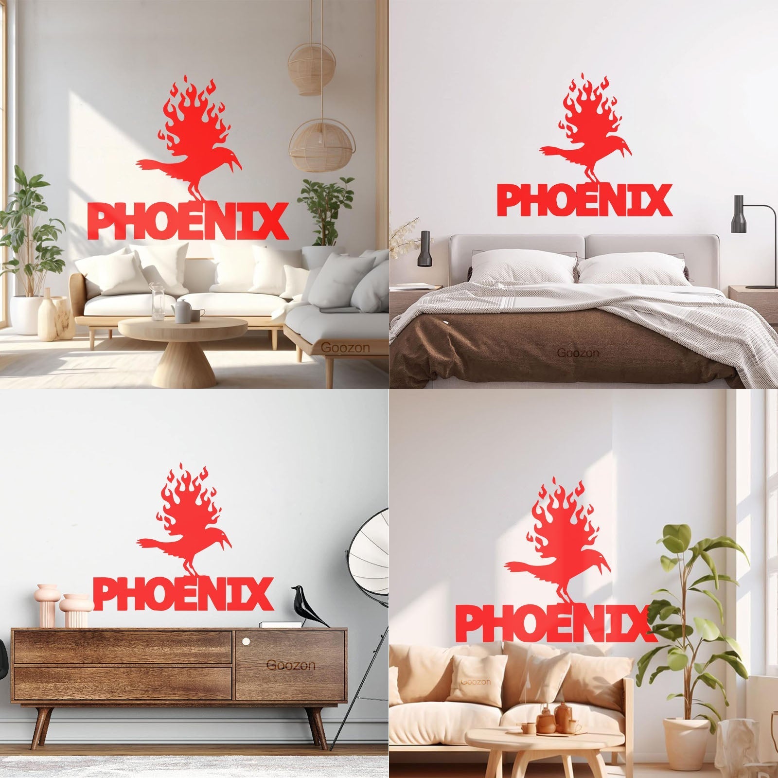 Wall Stickers Paster Paper Phoenix Fire Bird Mythical Fantasy Removable Without Leaving Glue