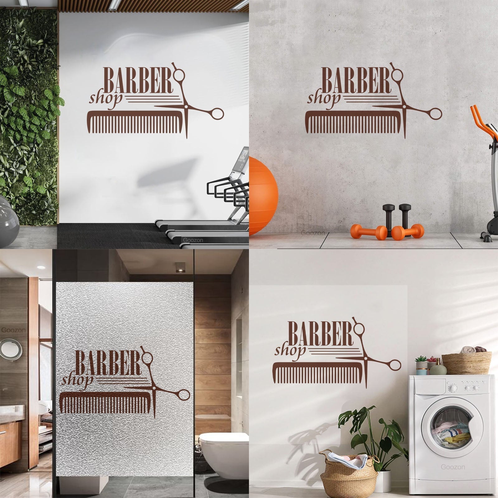 Lettering Decals Barber Shop Badges Tools Hair Salon Sign Self Adhesive