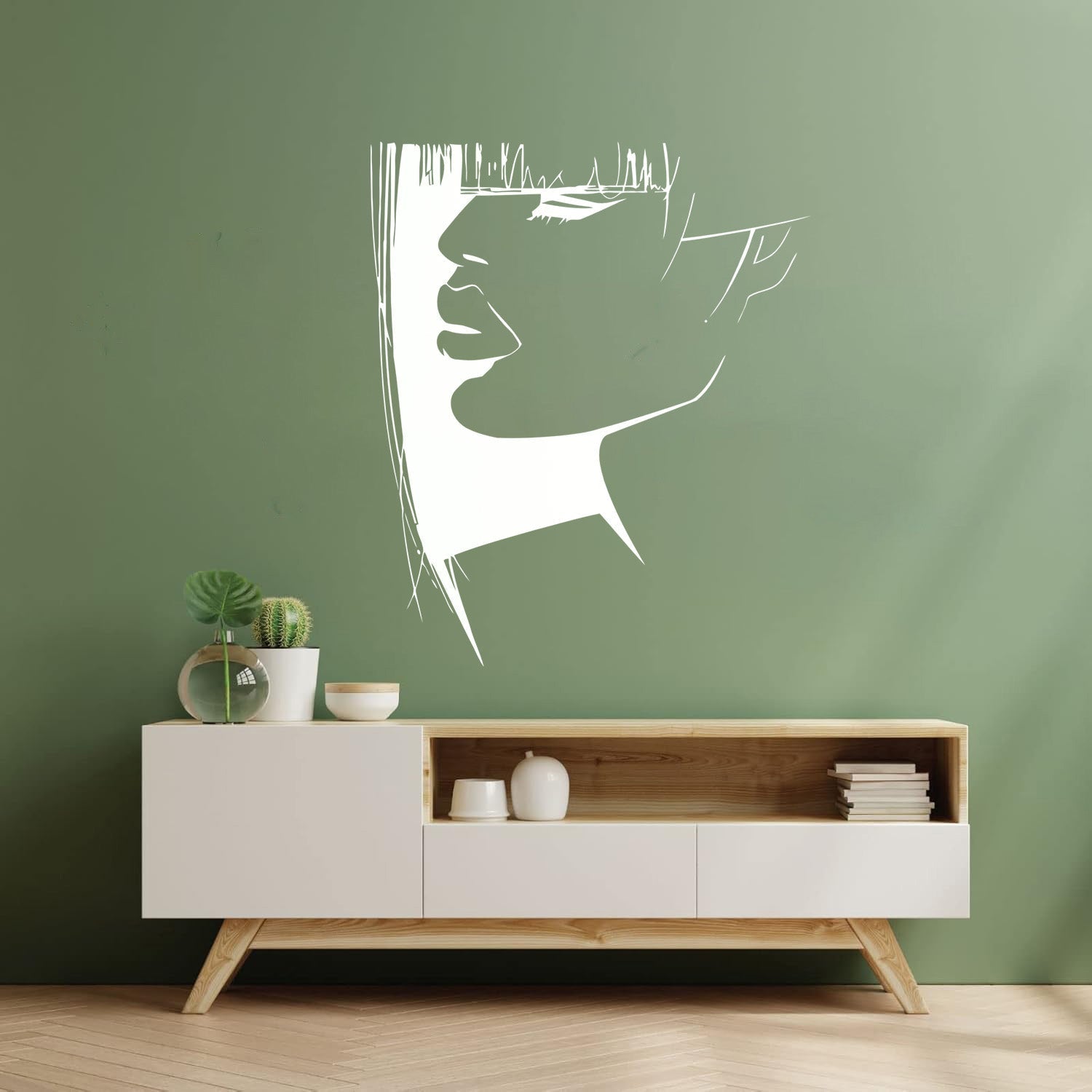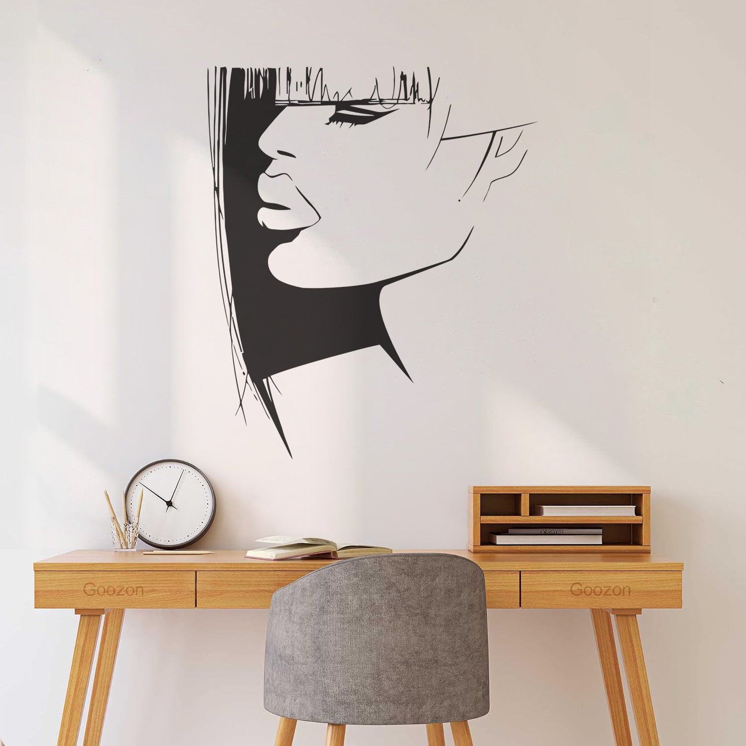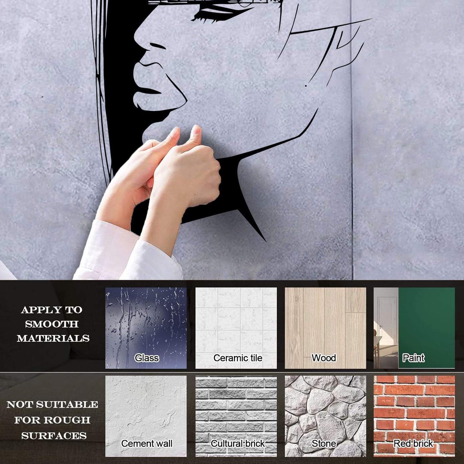 Gently press the decal area to secure it firmly to the wall.
