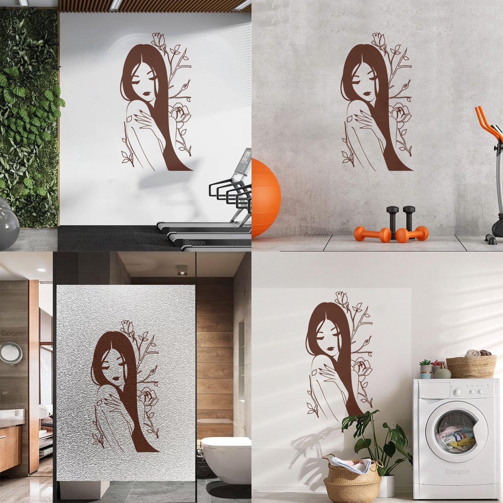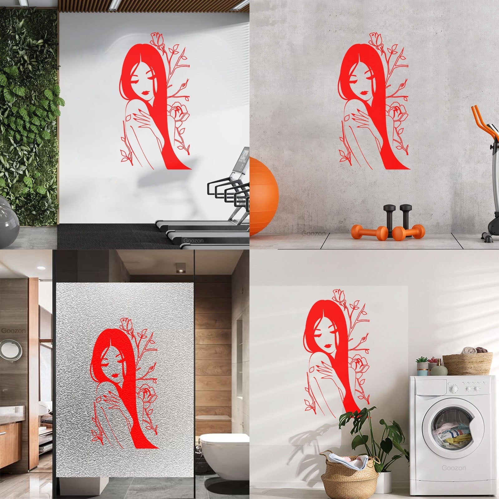 Vinyl Wall Stickers Flower Rose Beautiful Japanese Girl Spa Art Decoration
