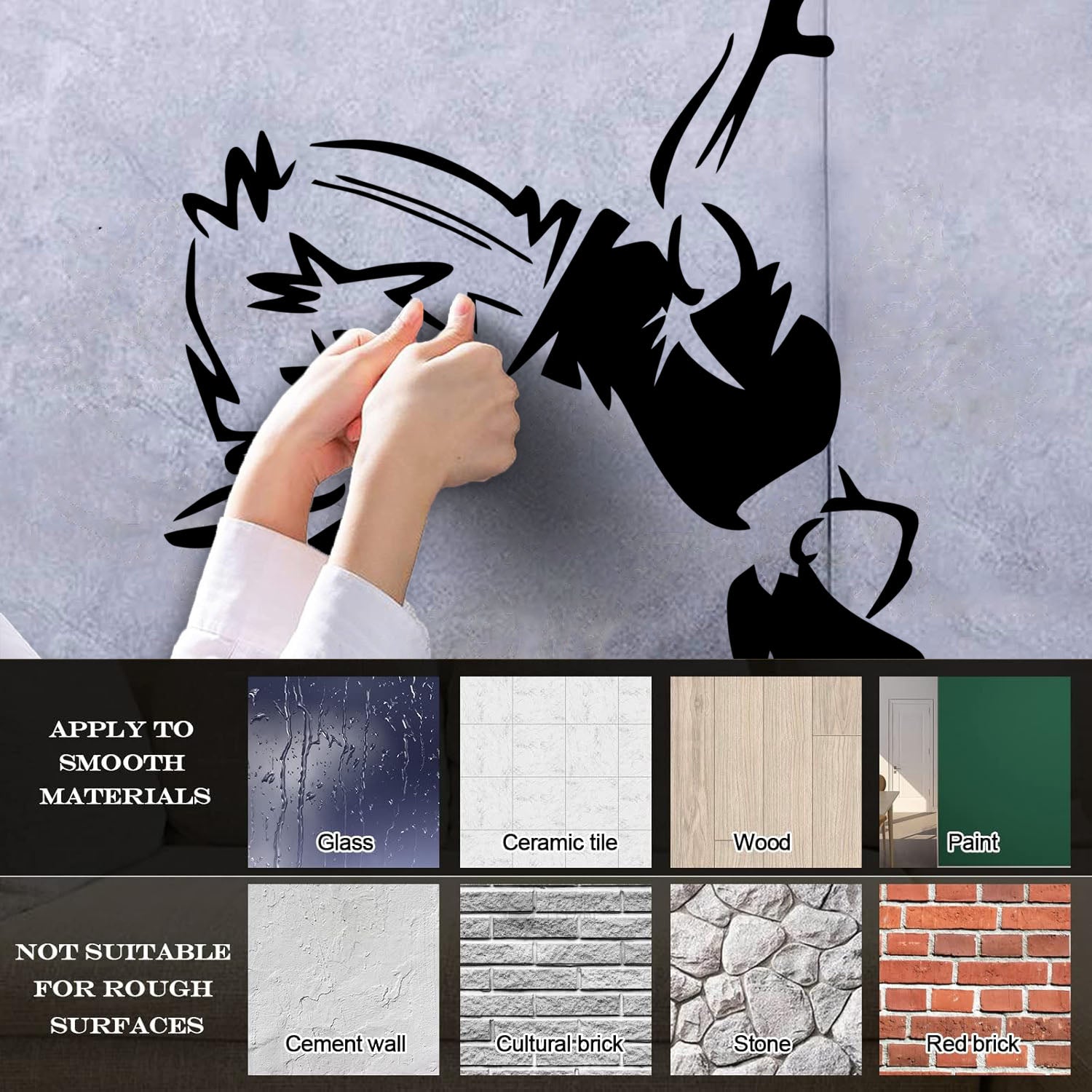 Gently press the decal area to secure it firmly to the wall.