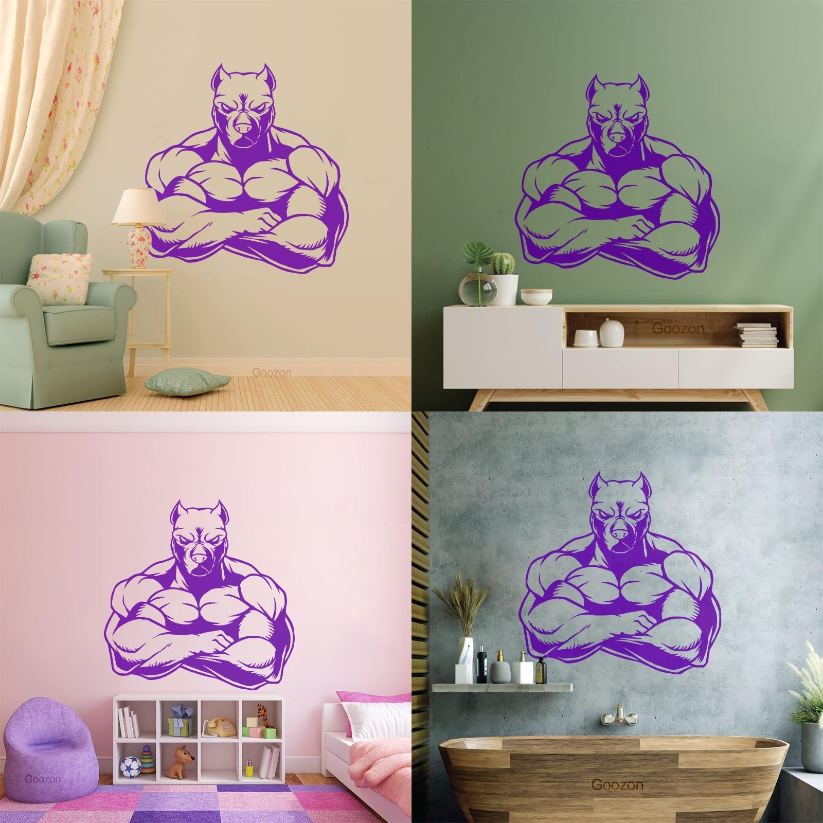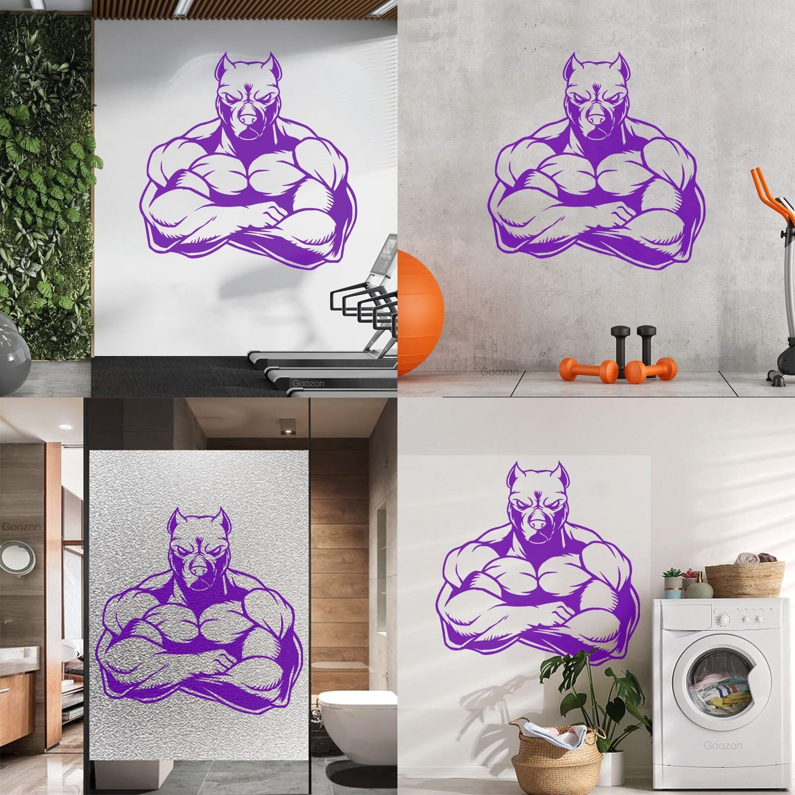 Wall Decals Muscled Dog Animal Pets Gymnastics Fitnesscenter Store Decoration