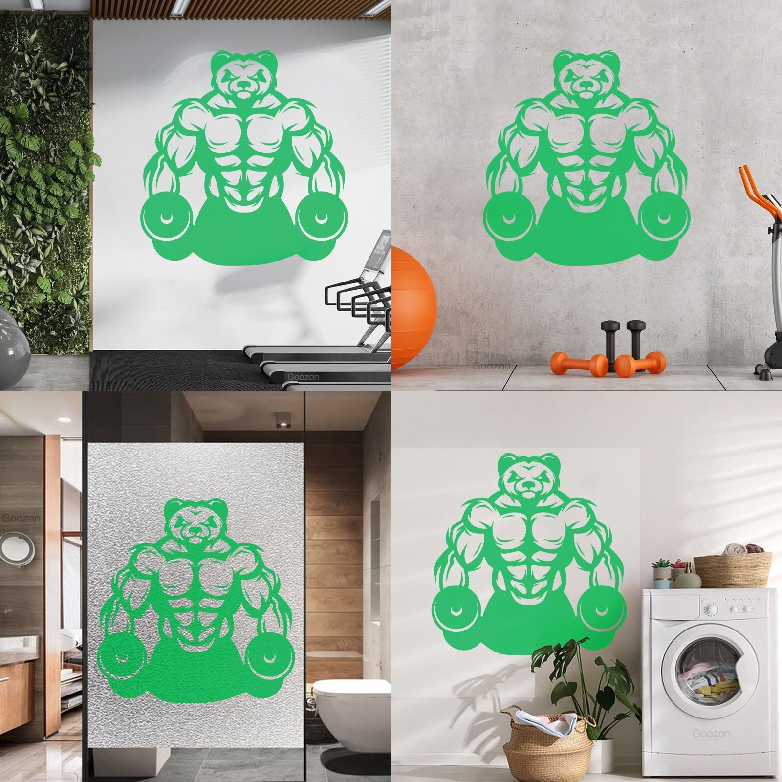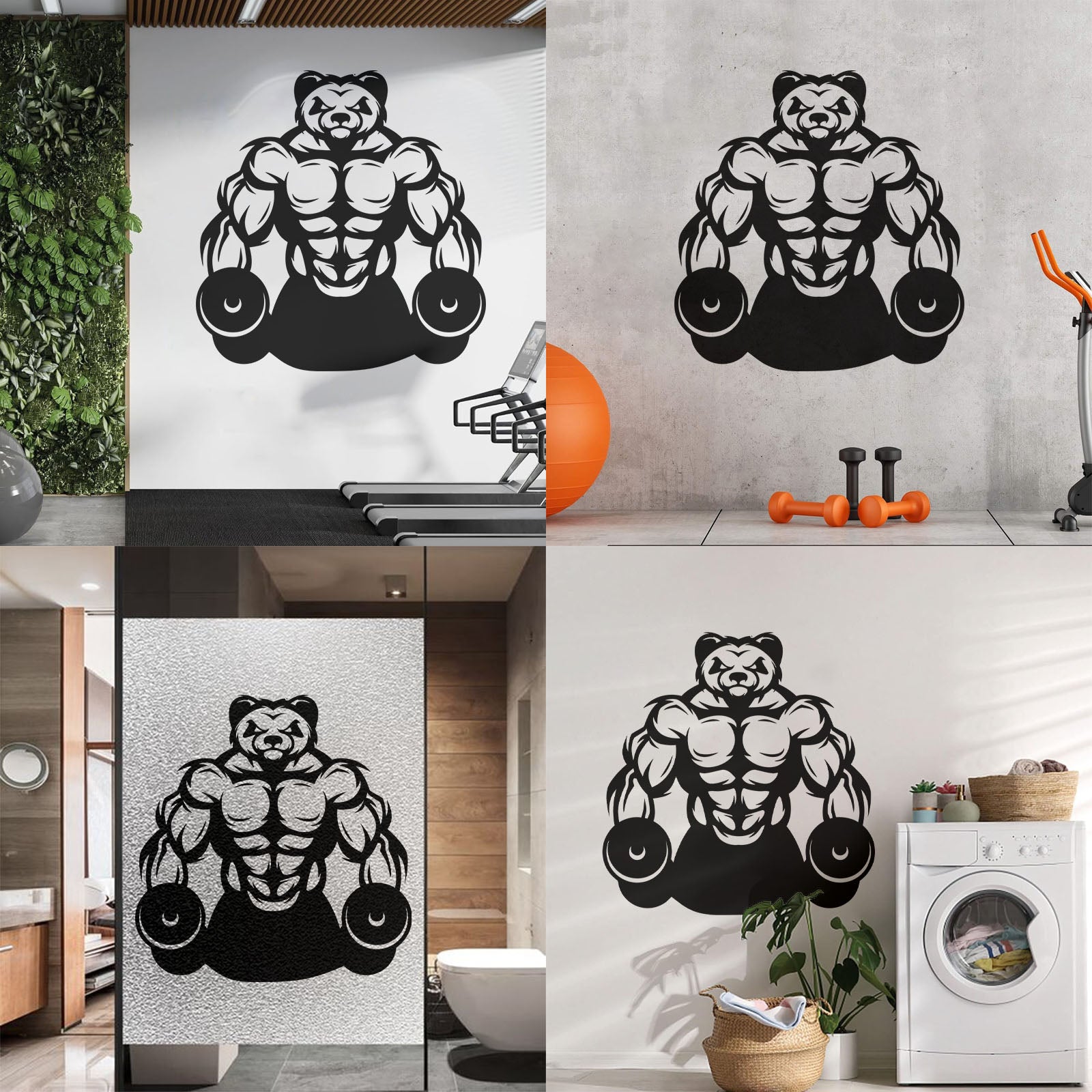 Wall Vinyl Sticker Decor Panda Muscles Gymnastics Fitnesscenter Sports Glass Stickers