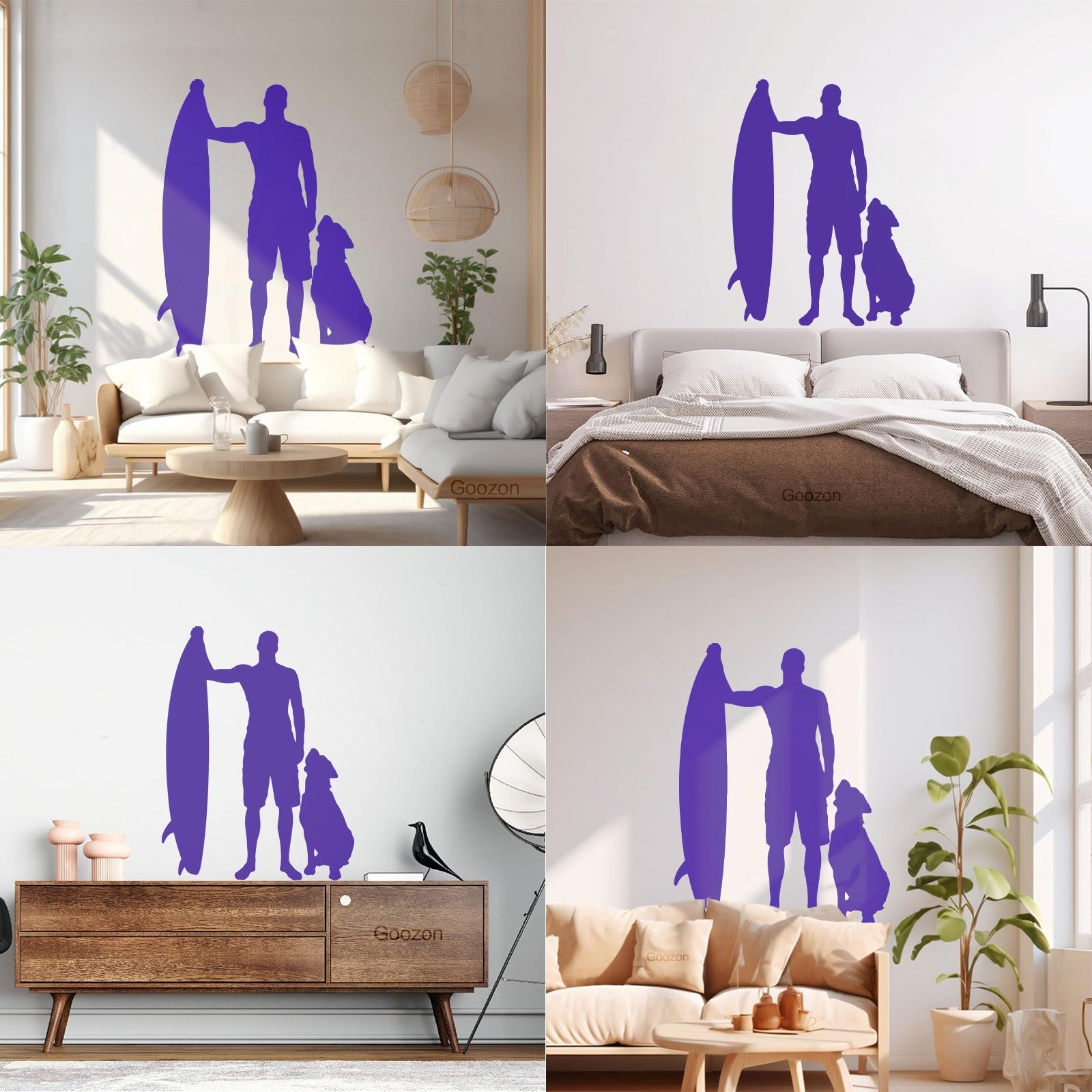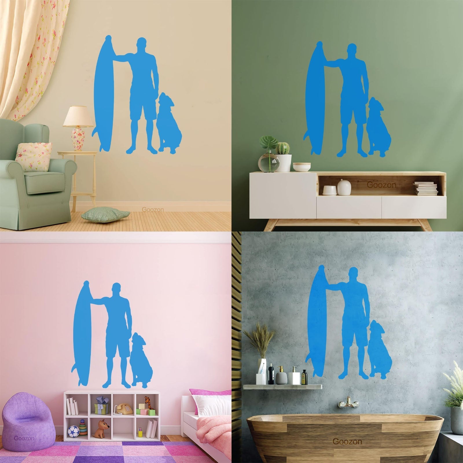 Engraving Decals Silhouette Surfing Board Surfer Dog Beach Style Car Body Decoration