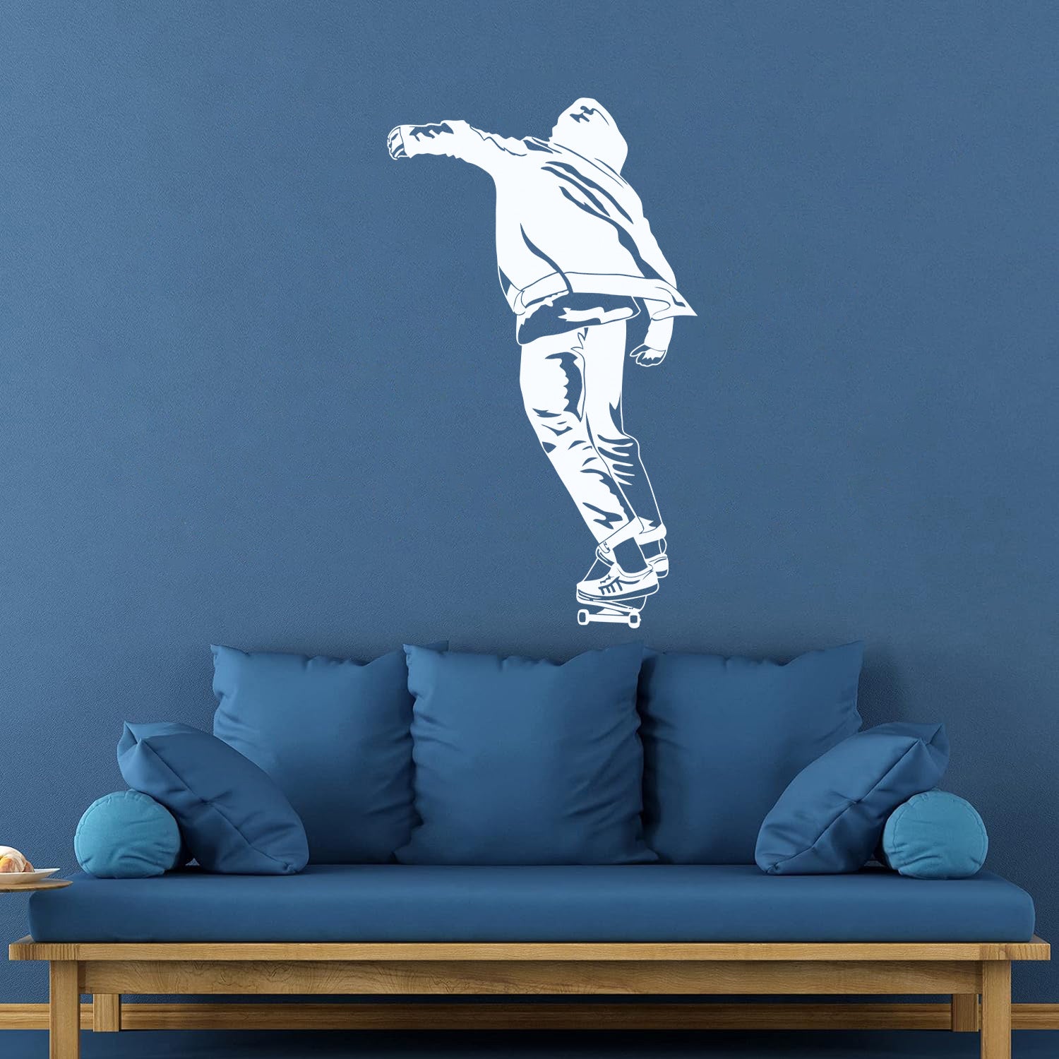 Gently press the decal area to secure it firmly to the wall.