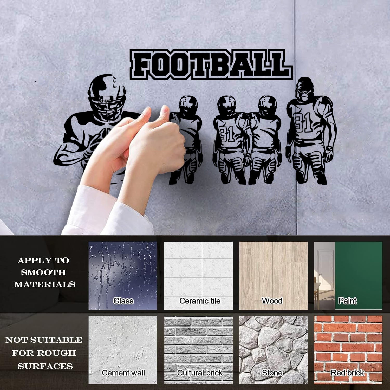 Wall Decals Sport Football Players Gorilla Team Game Removable Without Leaving Glue