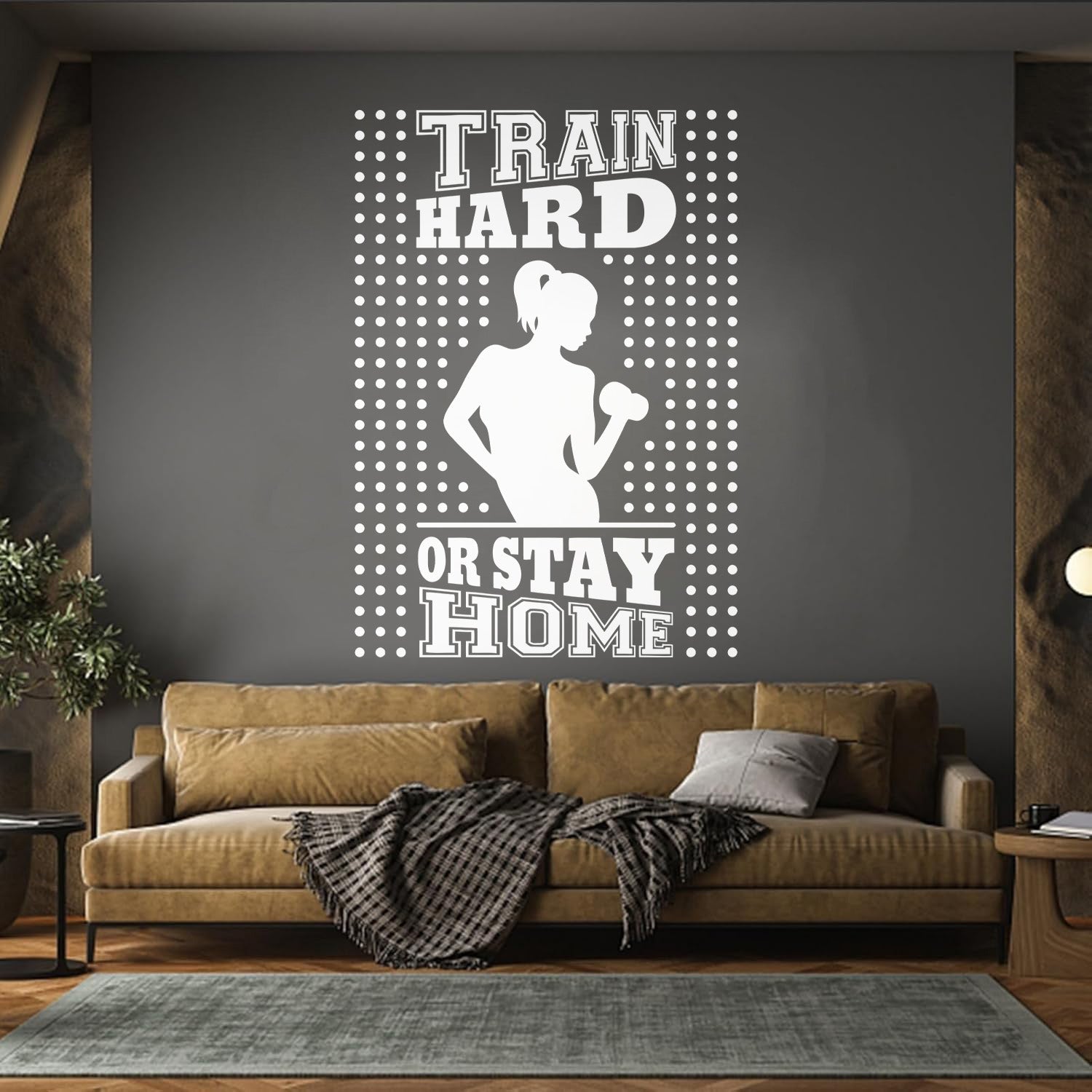 Wall Decals Pvc Train Hard Or Stay Home Gymnastics Fitnesscenter Trainer Beautiful Body Glass Stickers