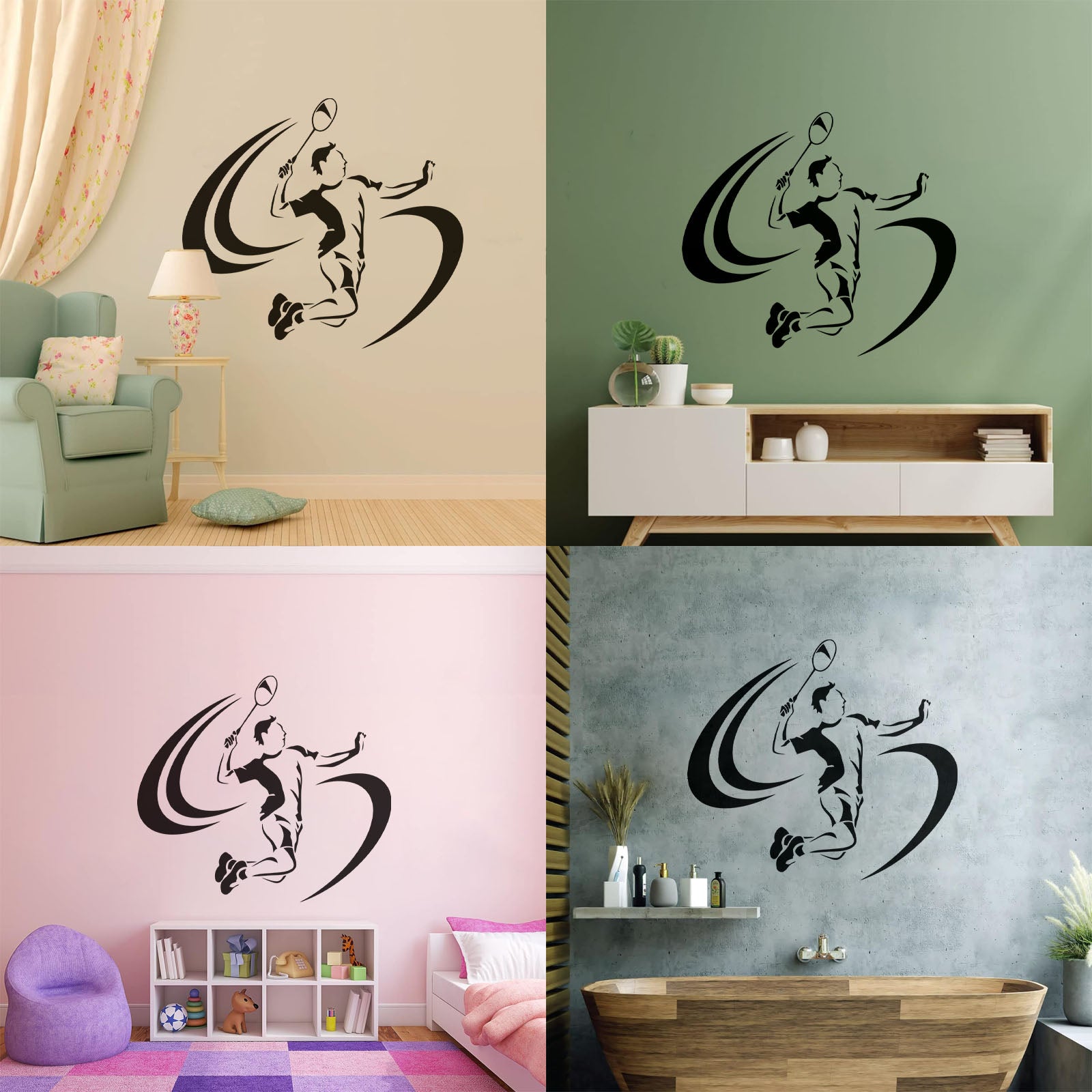 Wall Stickers Competition Game Player Tennis Badminton Art Mural Painting