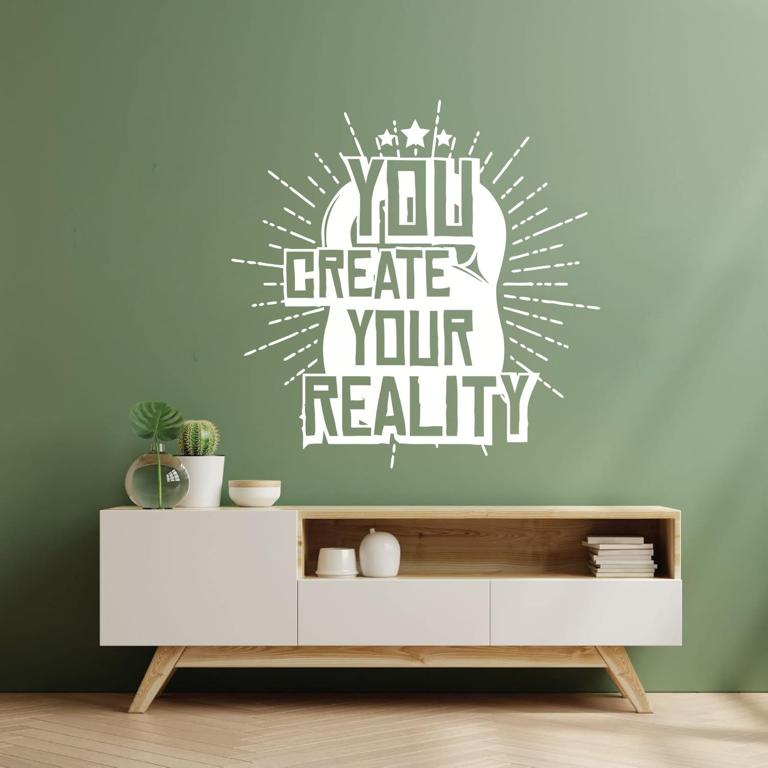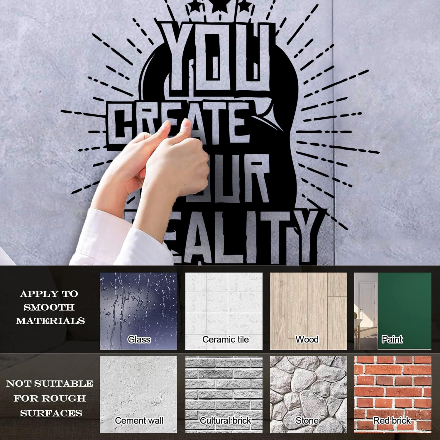 Gently press the decal area to secure it firmly to the wall.