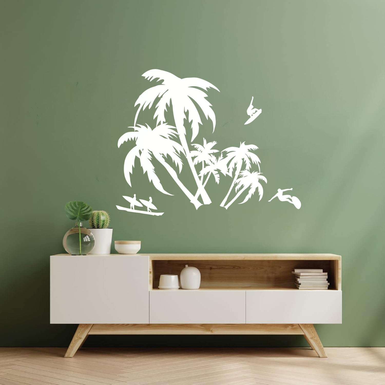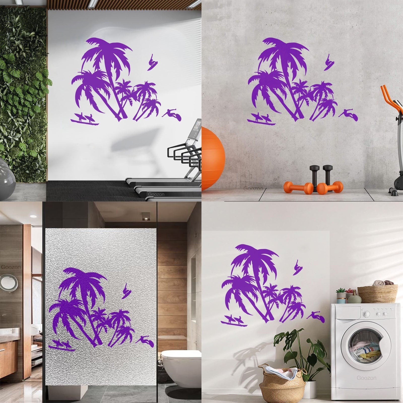 Wall Vinyl Sticker Decor Palm Beach Surfing Extreme Sport Ocean Can Modify And Add Information