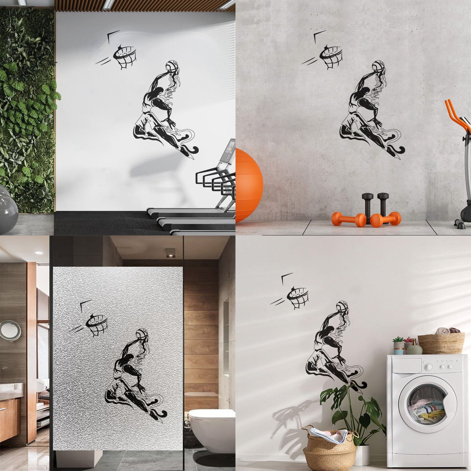 Sport Basketball Player Jumping Ball Basketball Hoop Engraving Stickers Wall Beautification