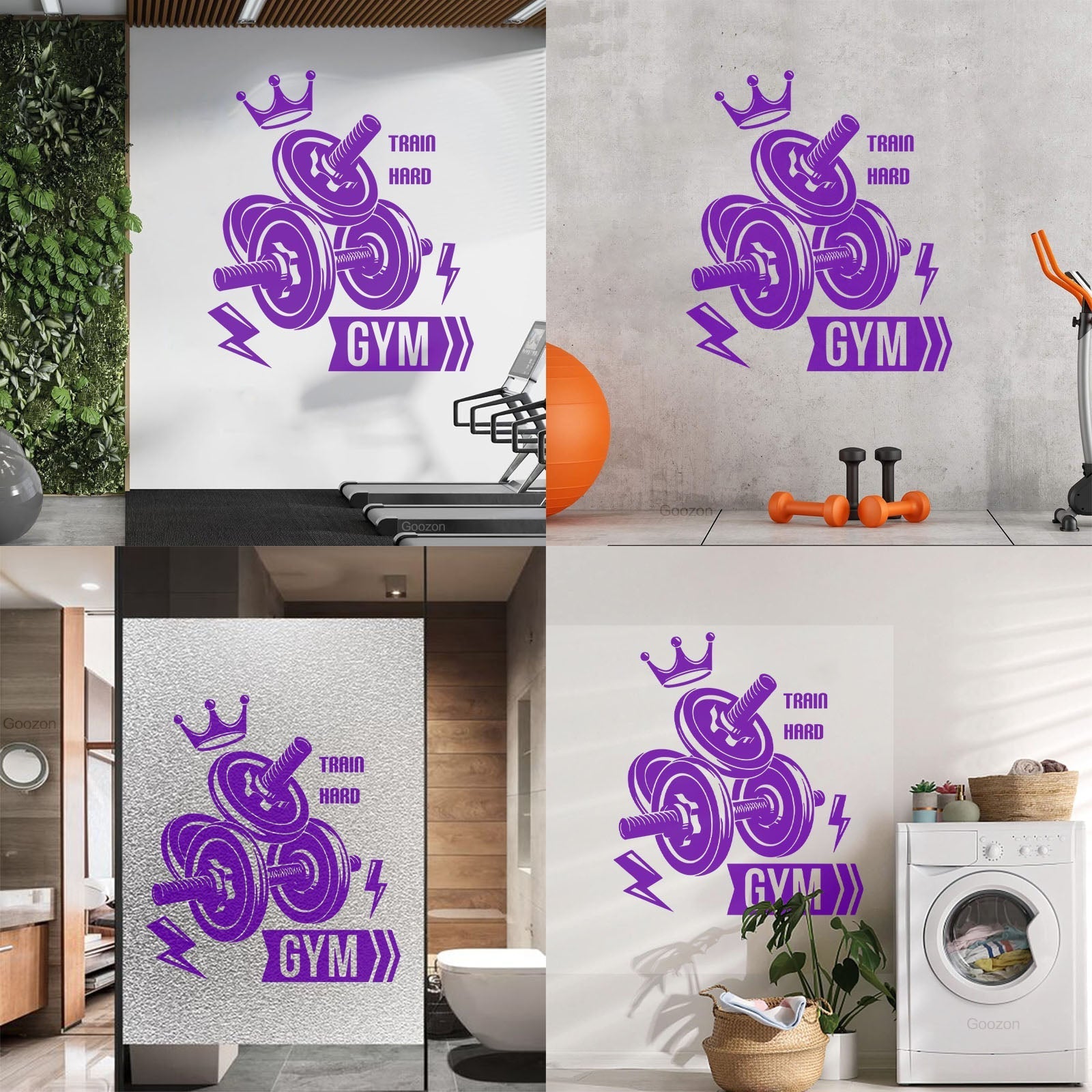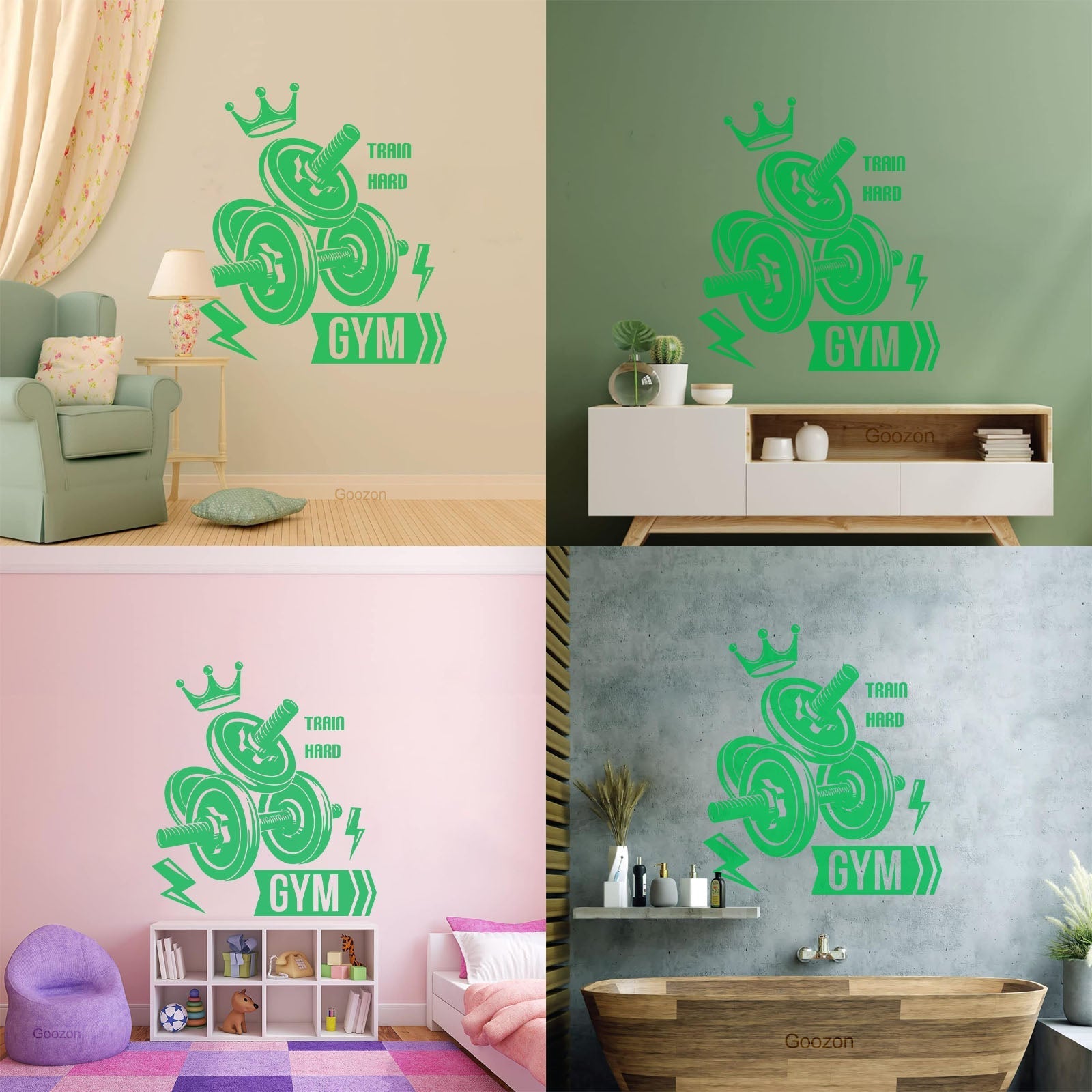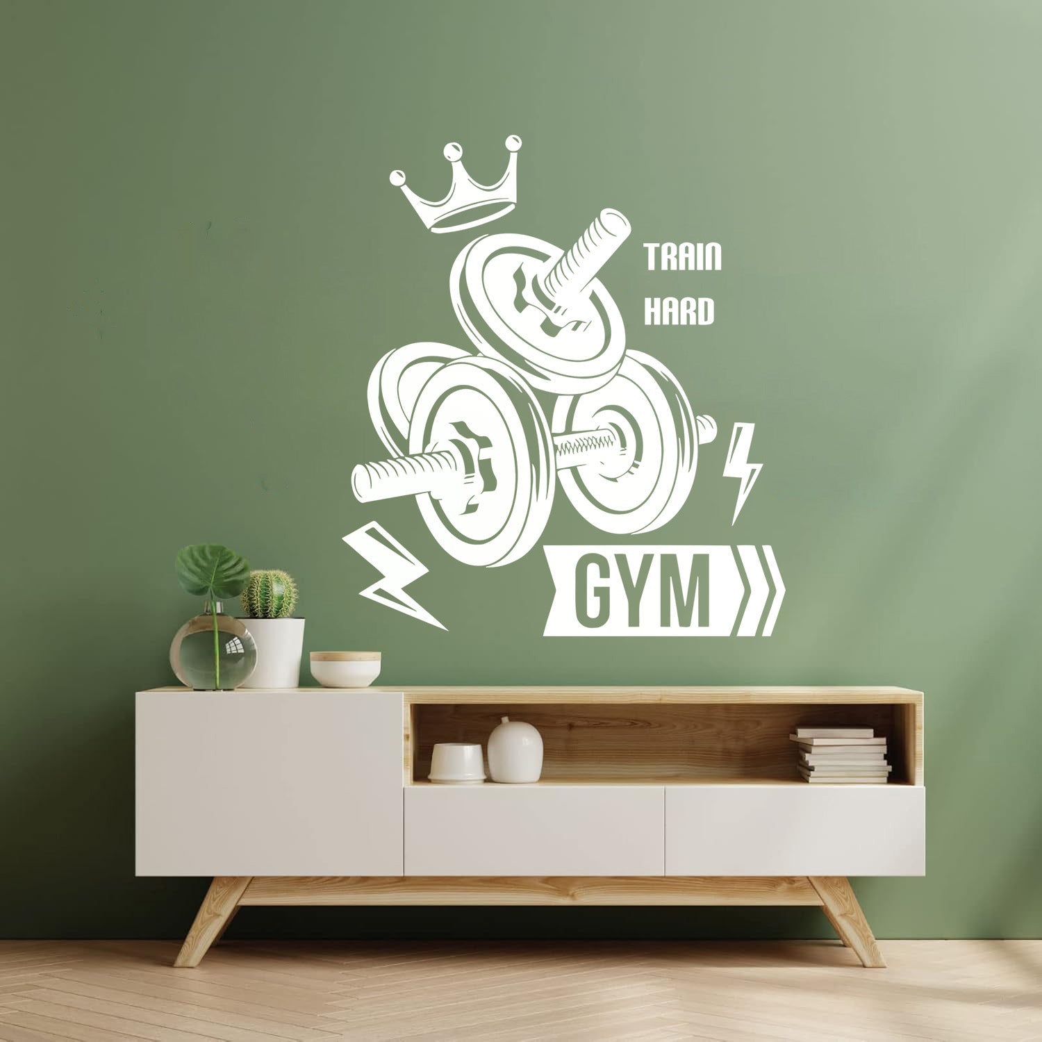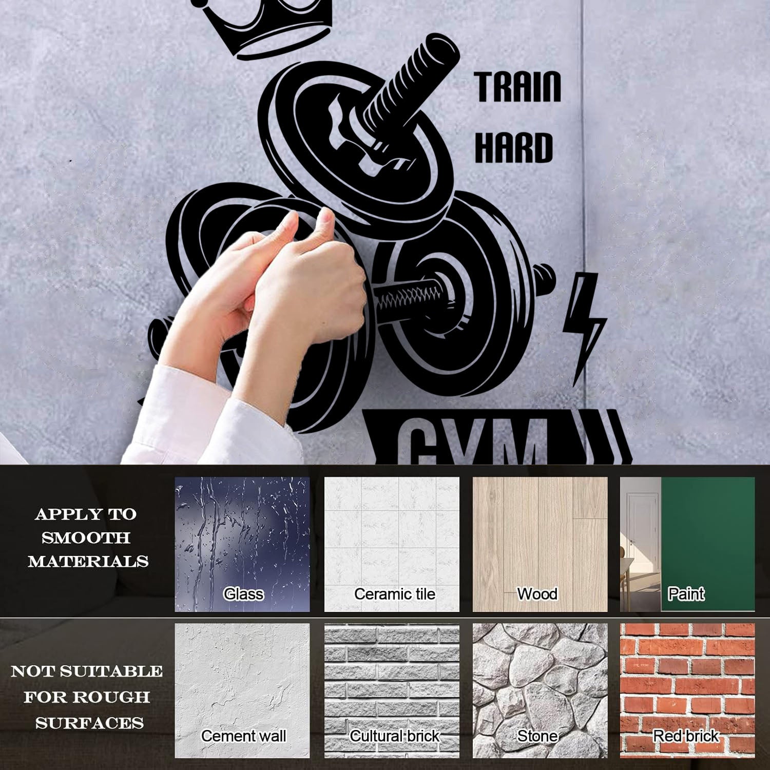 Mural And Wall Vinyl Decal Sport Fitnesscenter Gymnastics Dumbbells Bodybuilding Train Hard Multi Color Selection