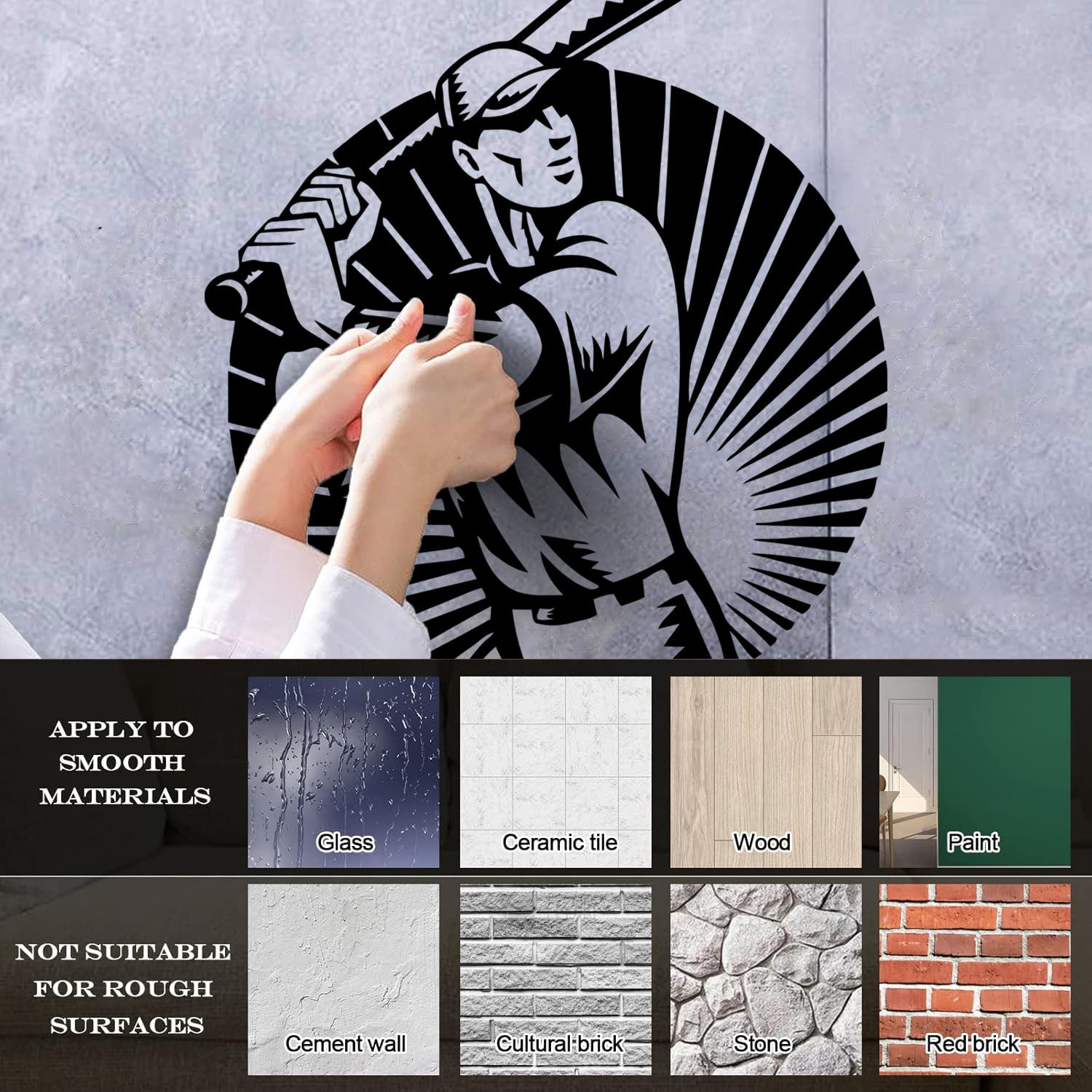 Gently press the decal area to secure it firmly to the wall.
