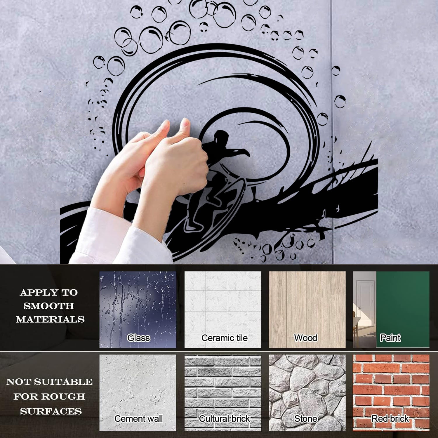 Gently press the decal area to secure it firmly to the wall.