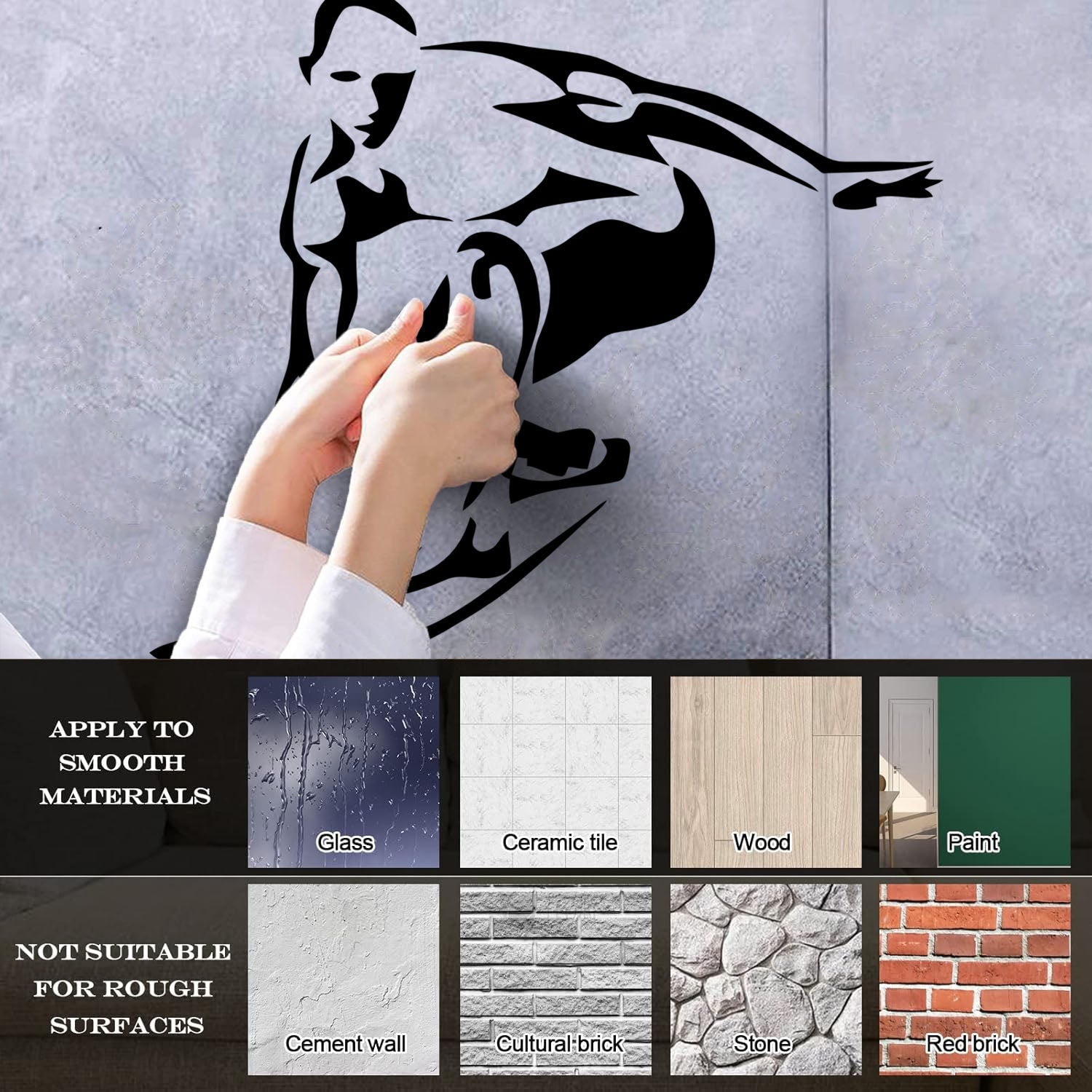 Gently press the decal area to secure it firmly to the wall.