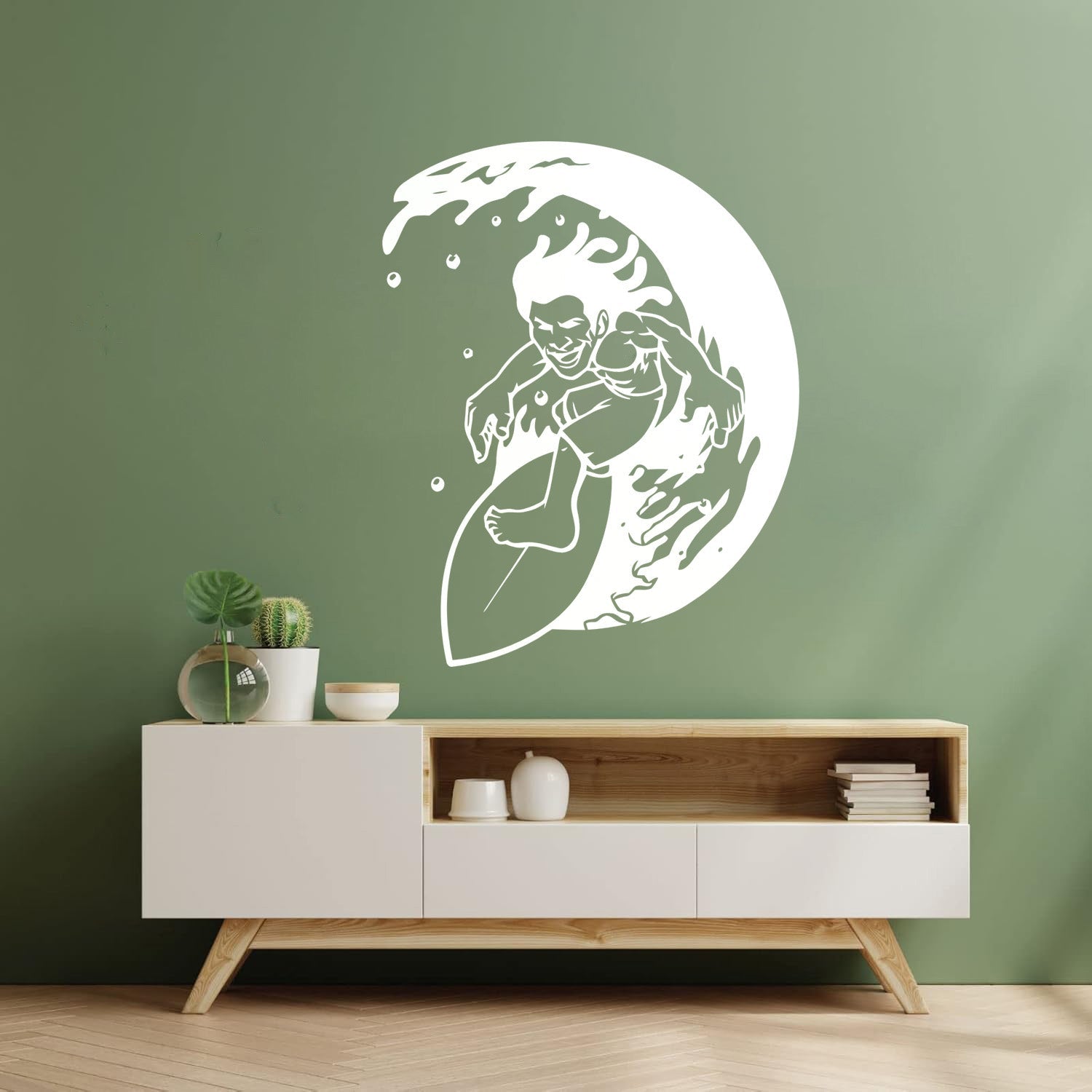 Gently press the decal area to secure it firmly to the wall.