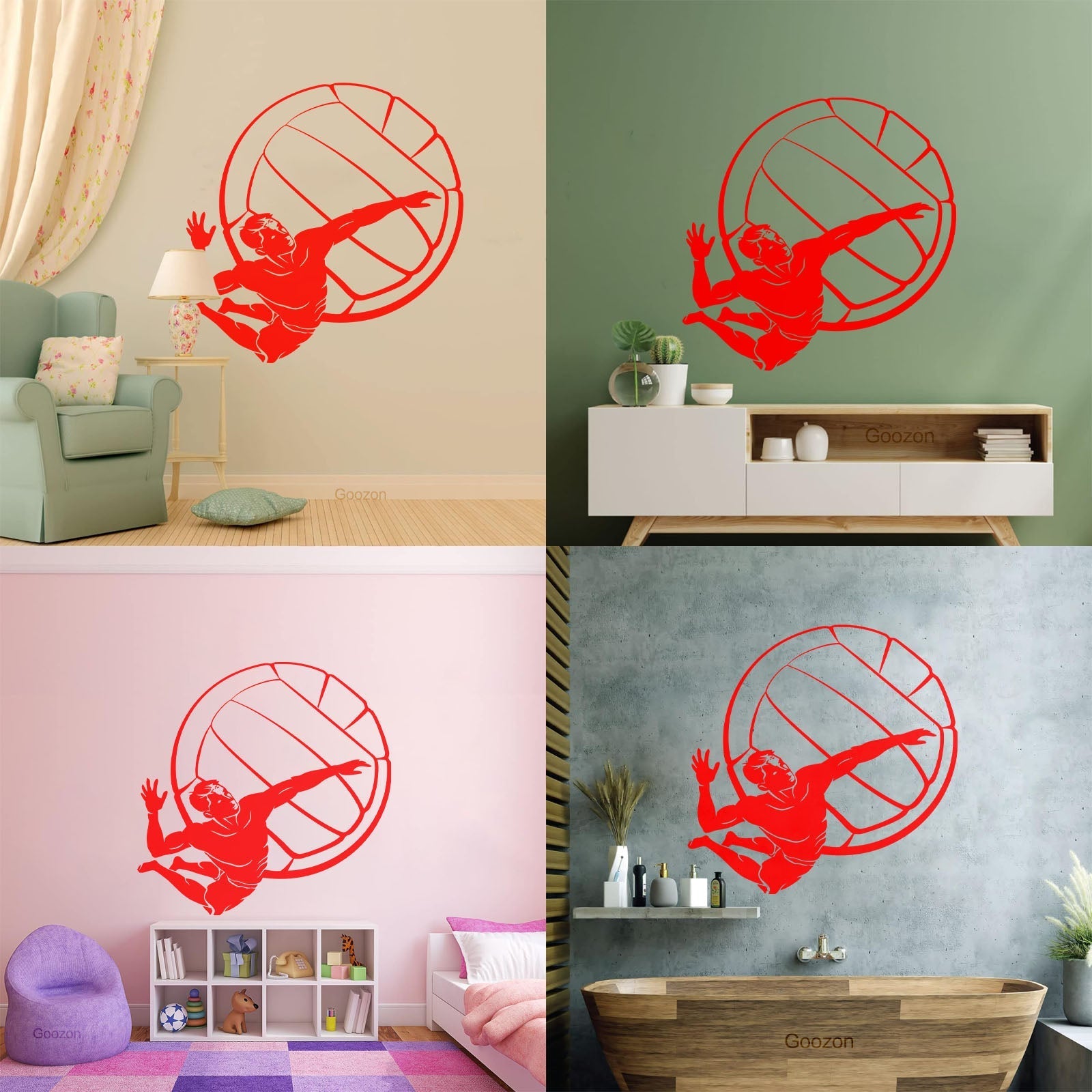 Lettering Stickers Volleyball Player Ball Sport Beach Living Easy Installation