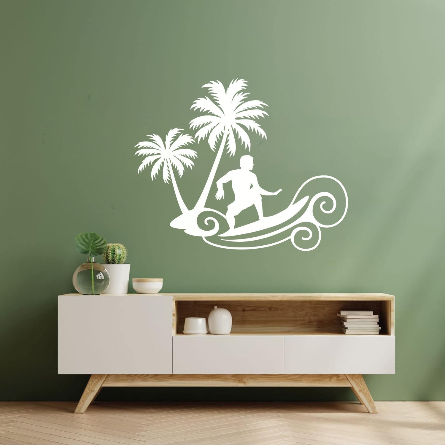 Wall Decals Wave Surfing Beach Extreme Sports Palms Waterproof