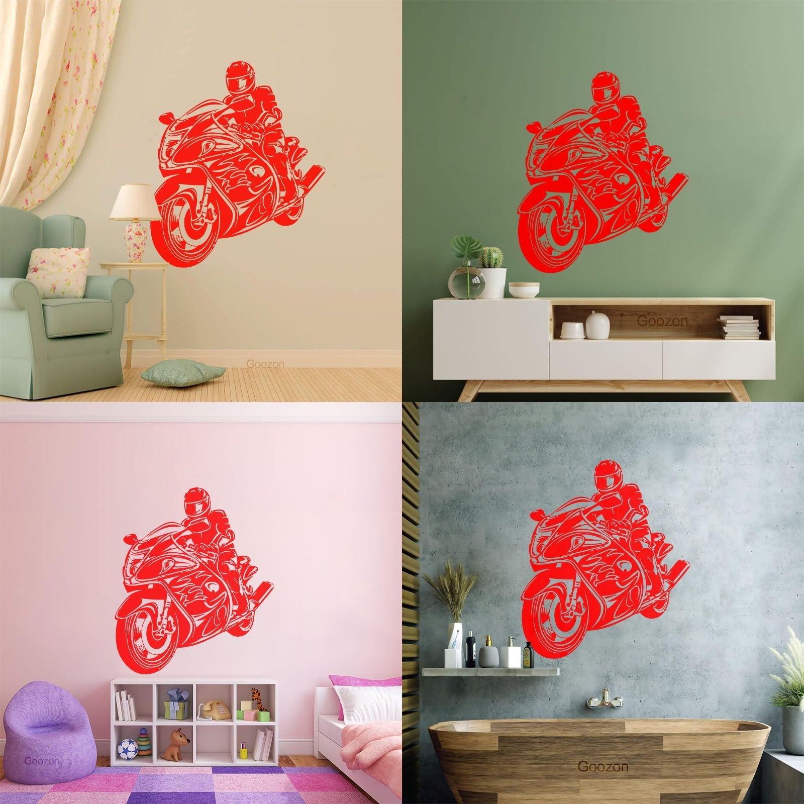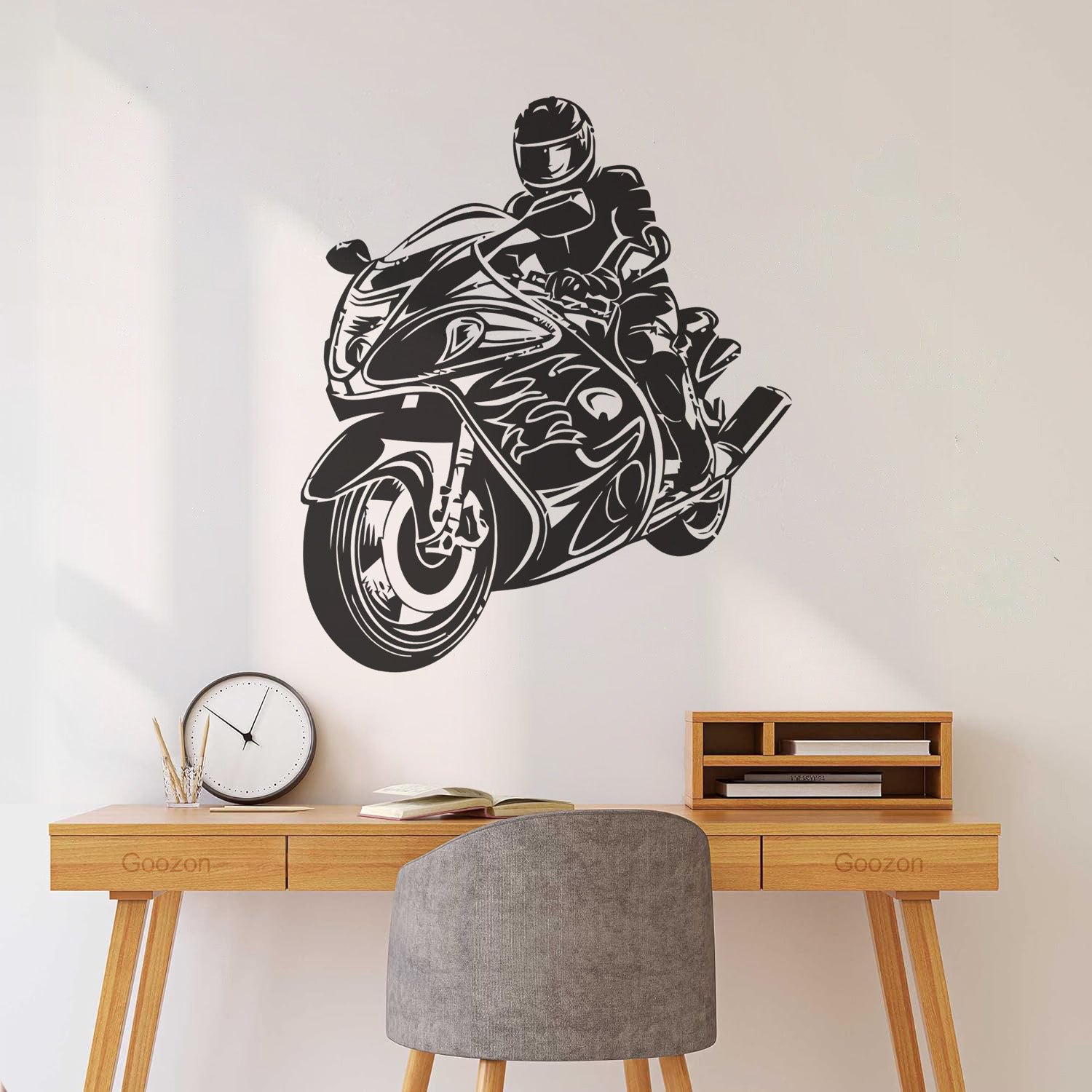Lettering Decals Biker Riding A Motorcycle Bikers Sport Emblem Glass Stickers