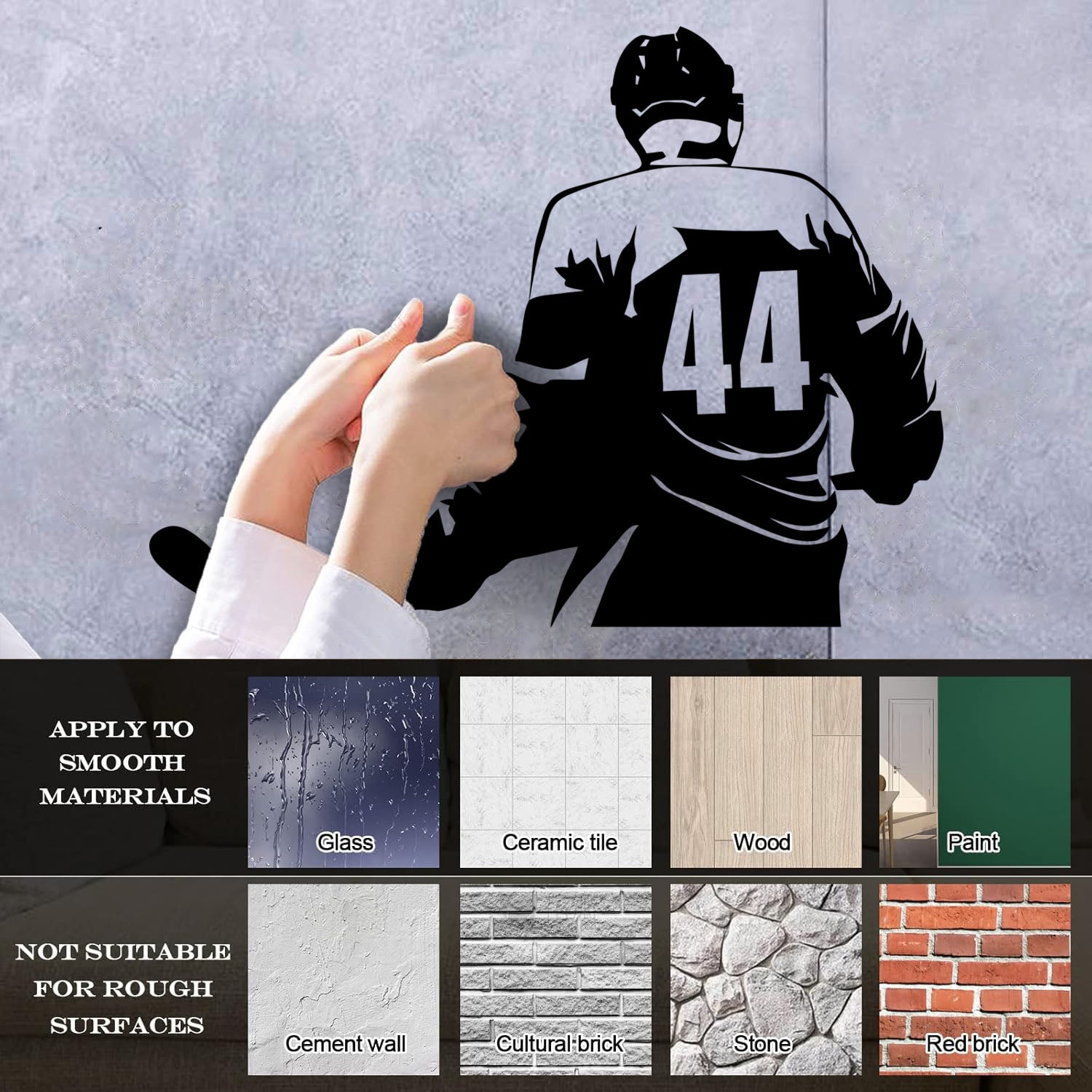 Gently press the decal area to secure it firmly to the wall.