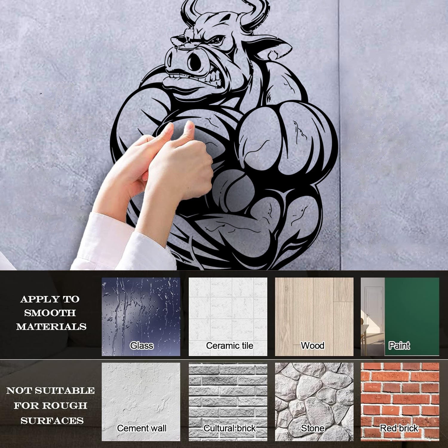 Wall Decals Pvc Fitnesscenter Bodybuilding Angry Bull Muscles Animals Can Modify And Add Information