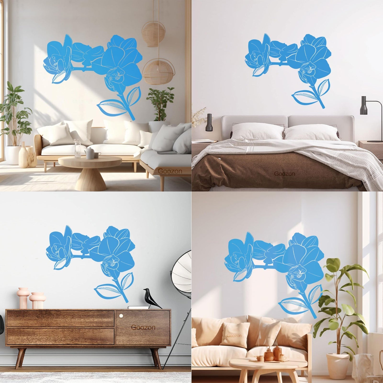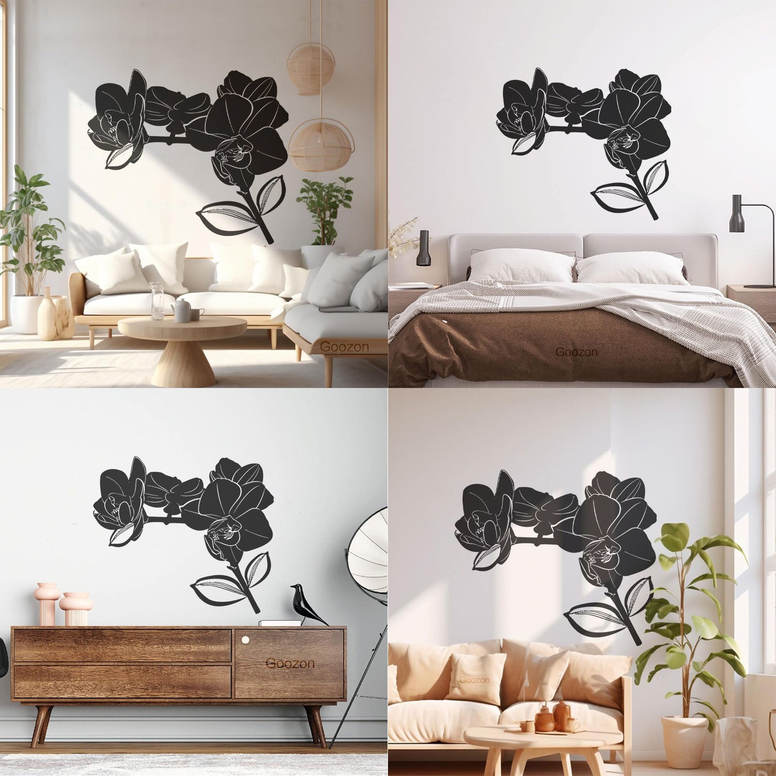 Bud Leaves Branch Flowers Orchid Mural And Wall Vinyl Decal Window Decals