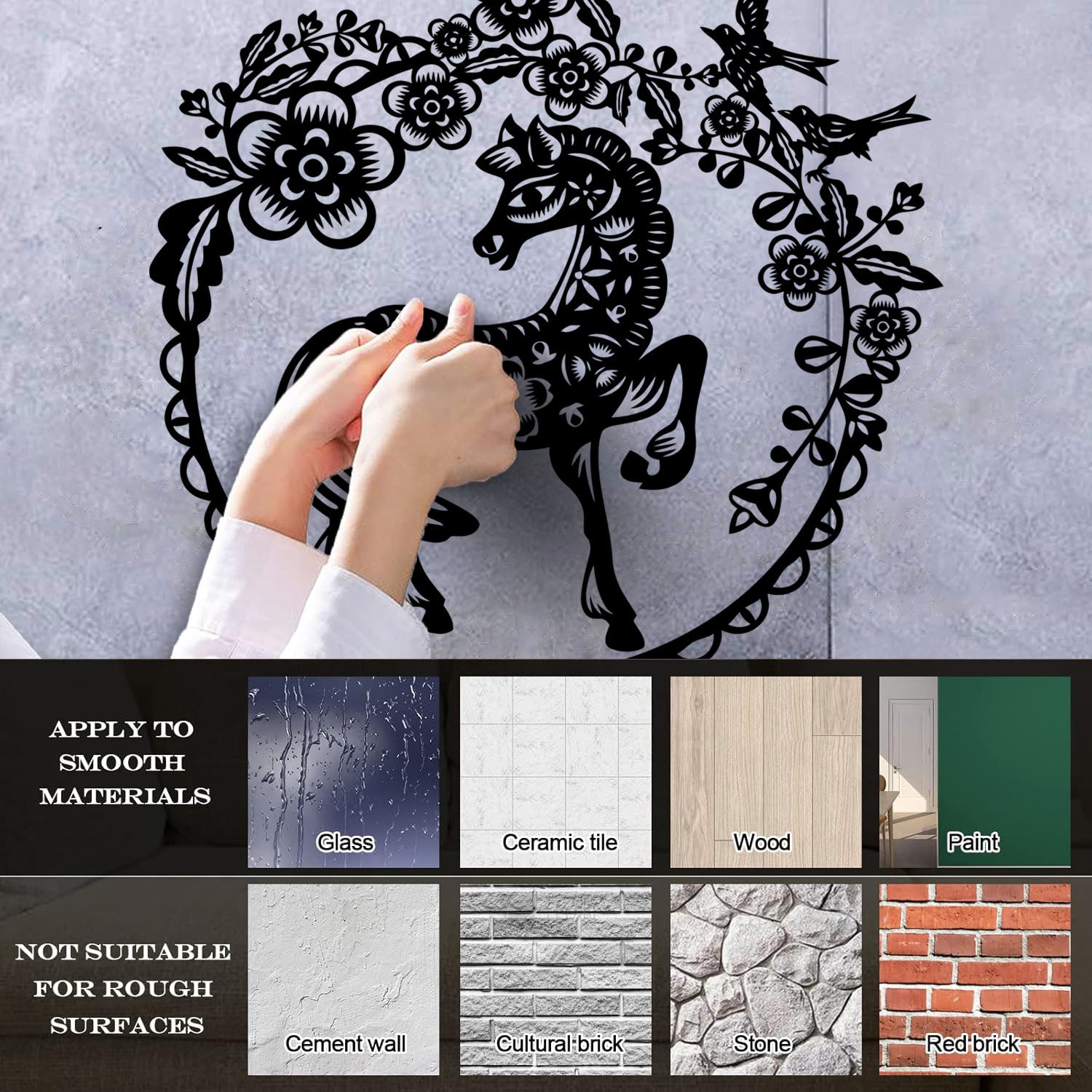 The wall sticker has an adhesive backing.