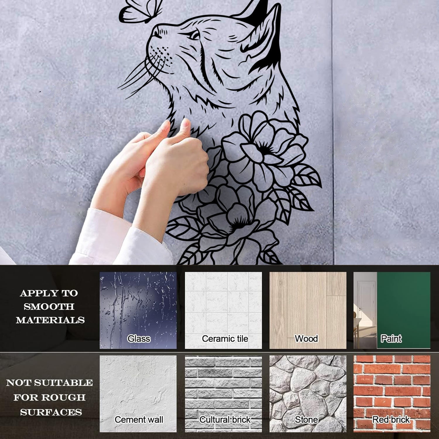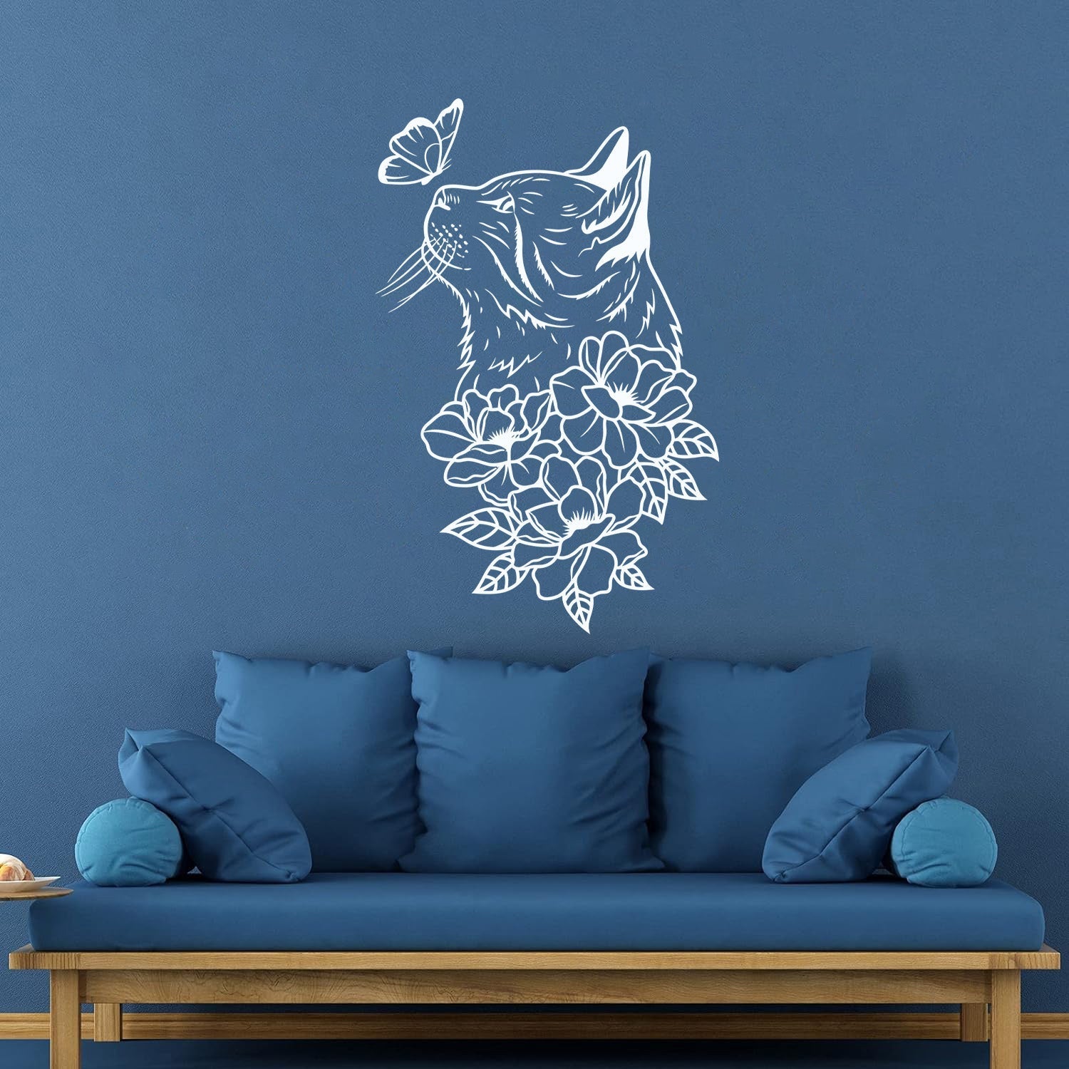 Mural And Wall Vinyl Decal Abstract Cat Head Flowers Butterfly It Won'T Fall Off