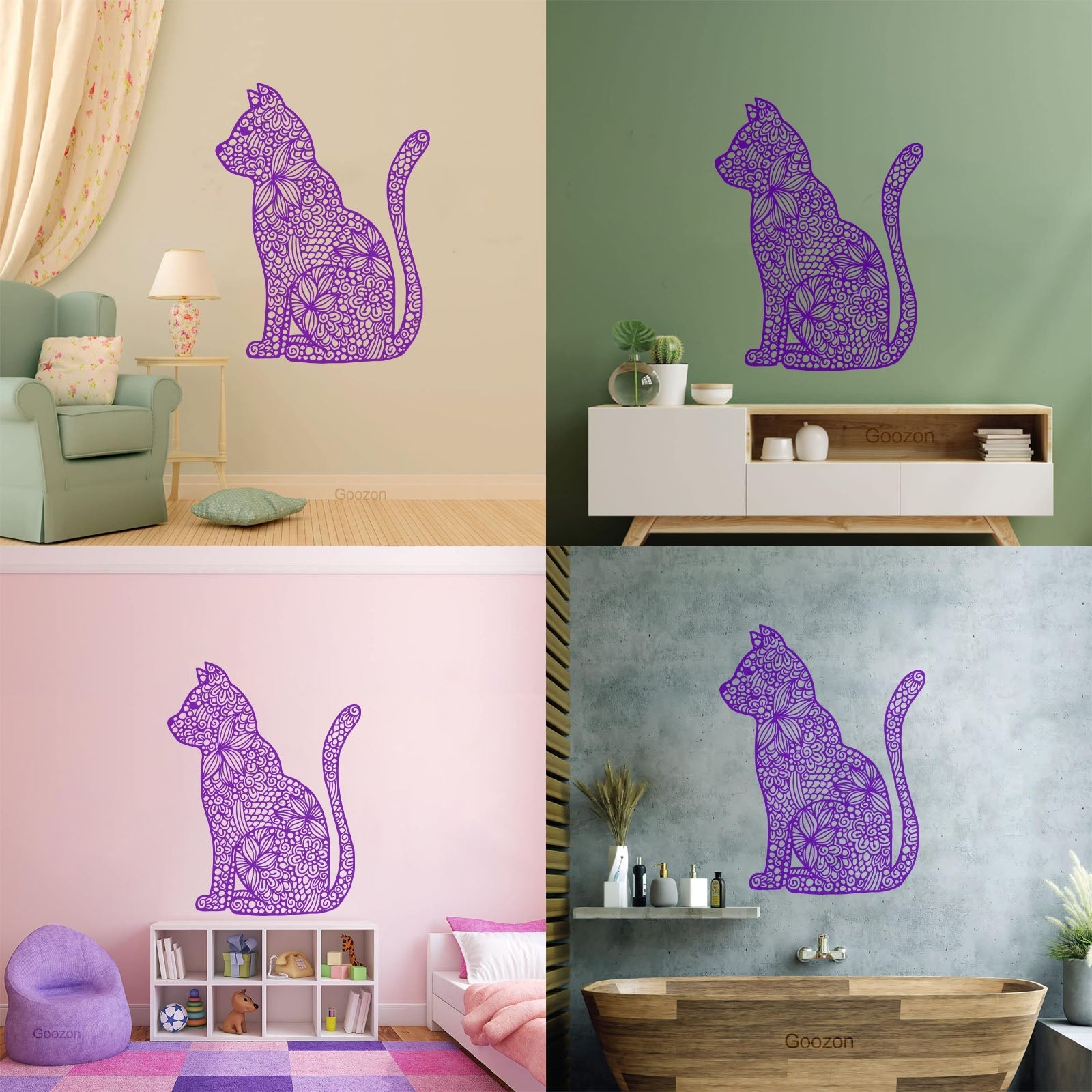 Wall Stickers Paster Paper Abstract Cat Pet Flower Pattern Personalized Customization