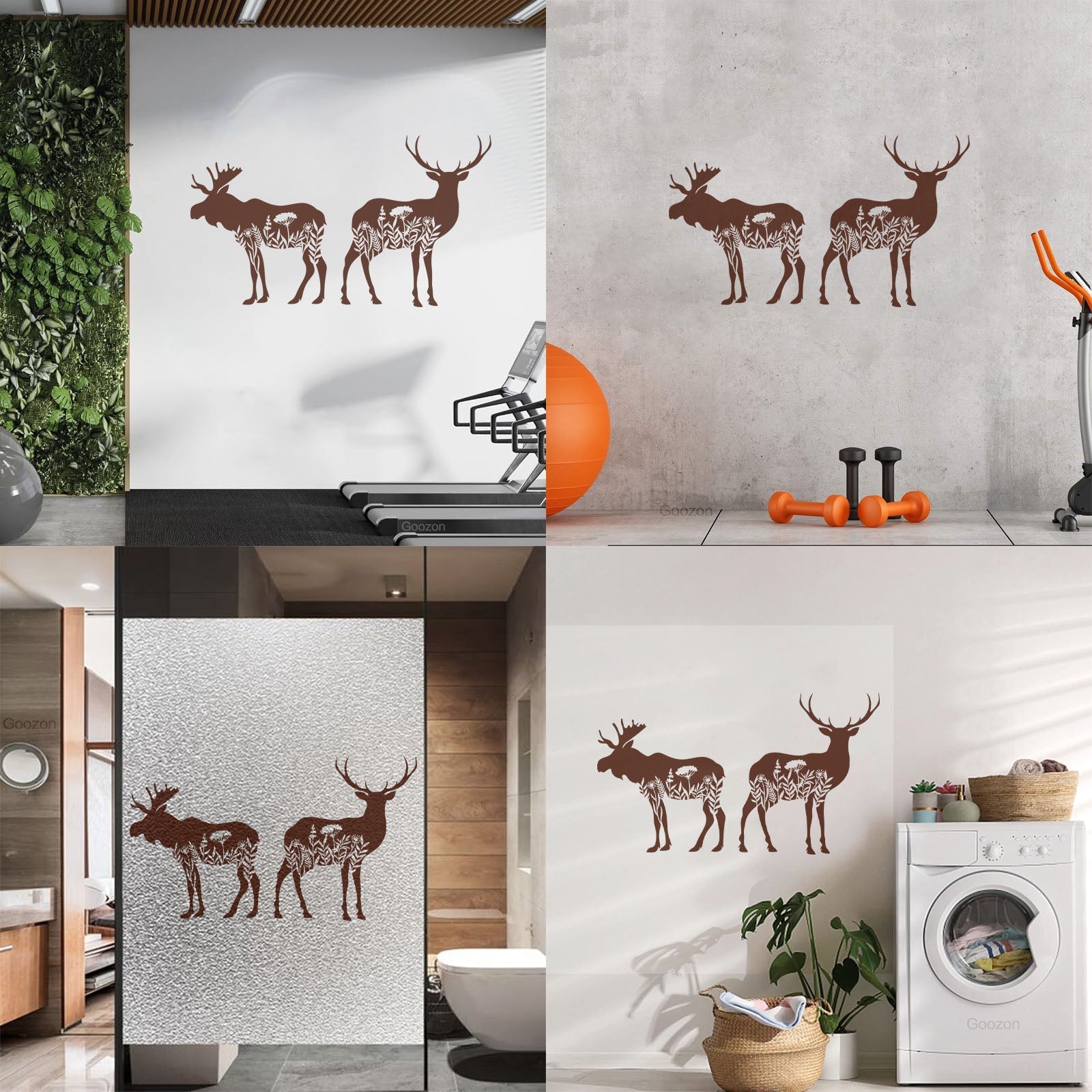 Engraving Decals Animals Deer Moose Flowers Natural Easy Installation