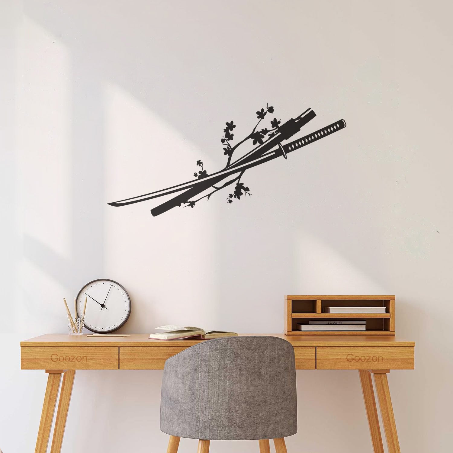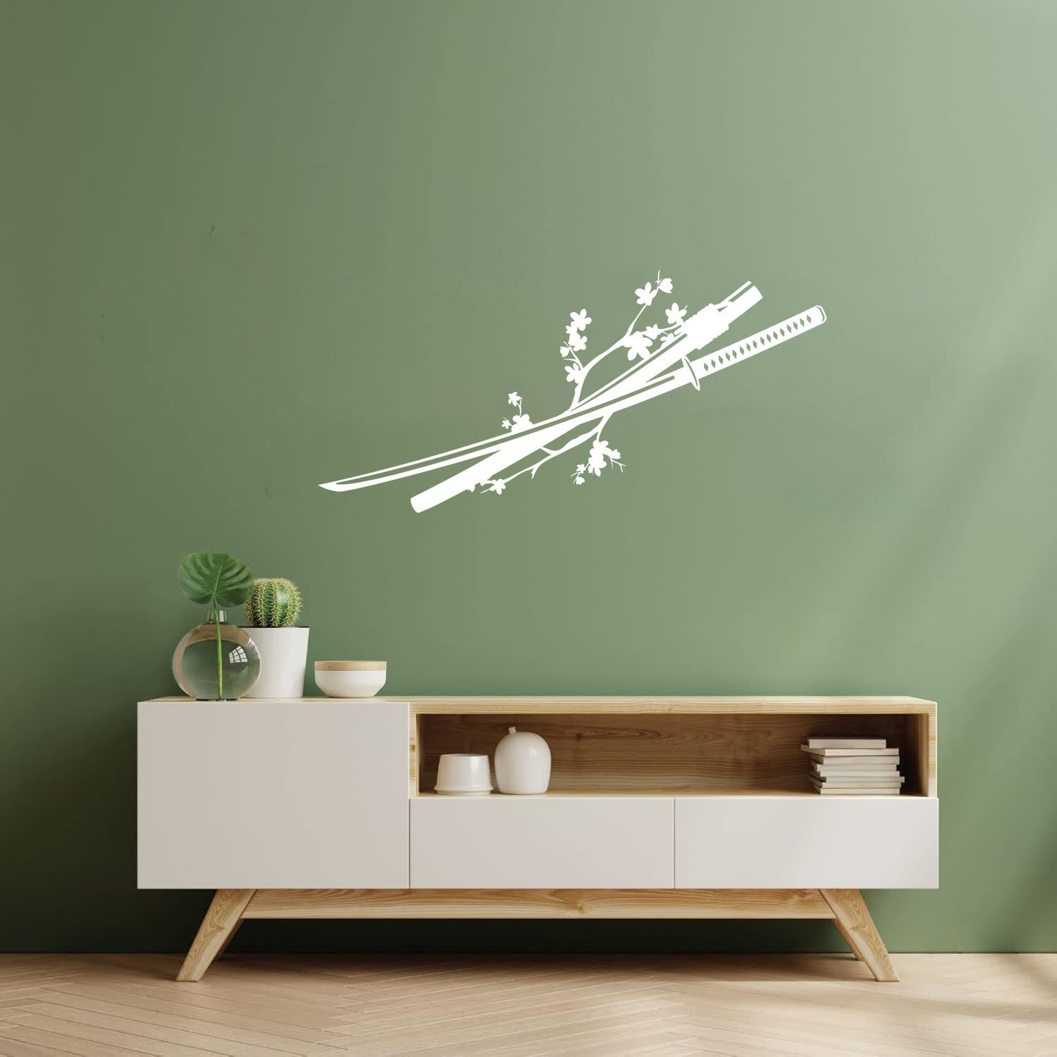 Asian Japanese Catana Sword Sakura Branch Flowers Wall Decals Pvc Window Decals