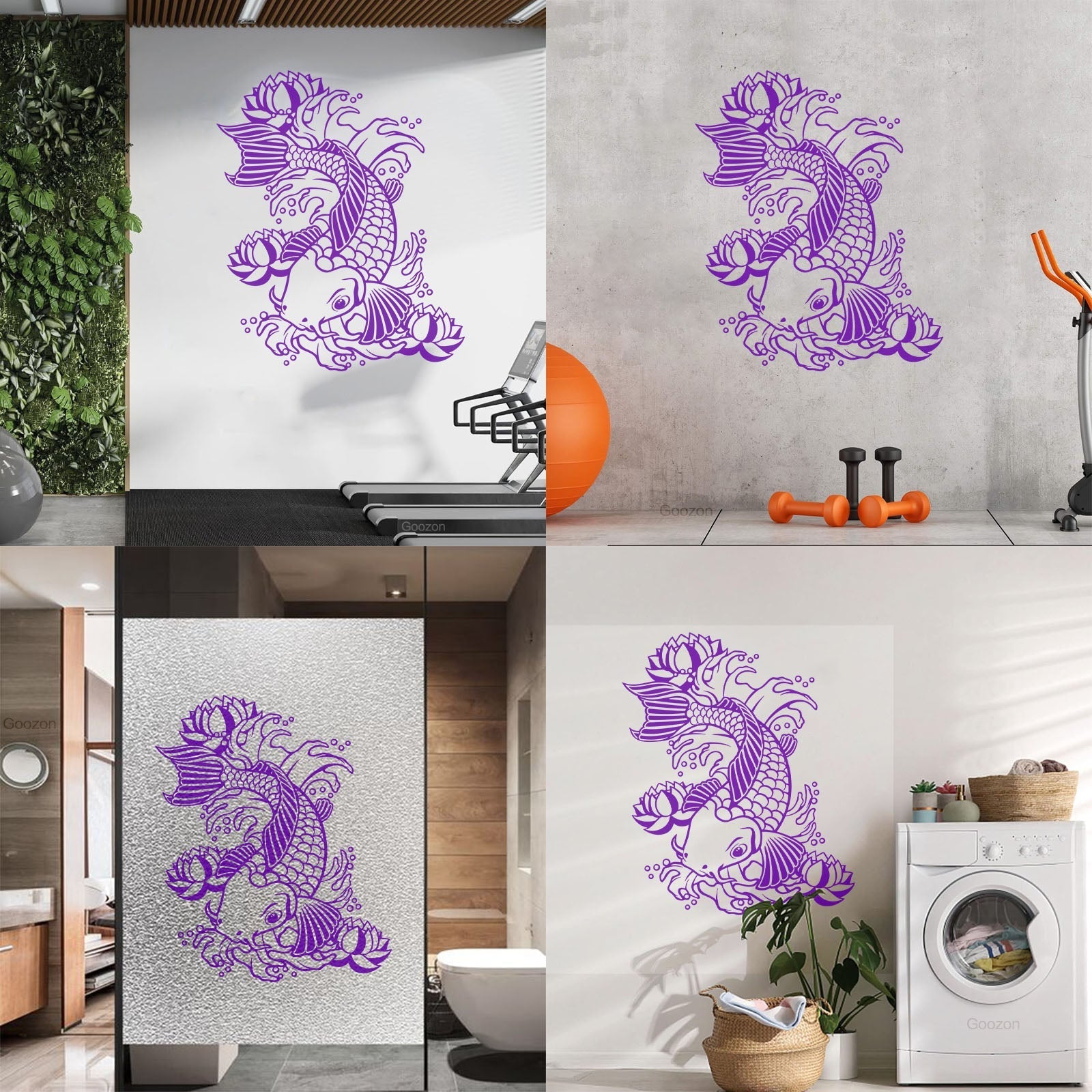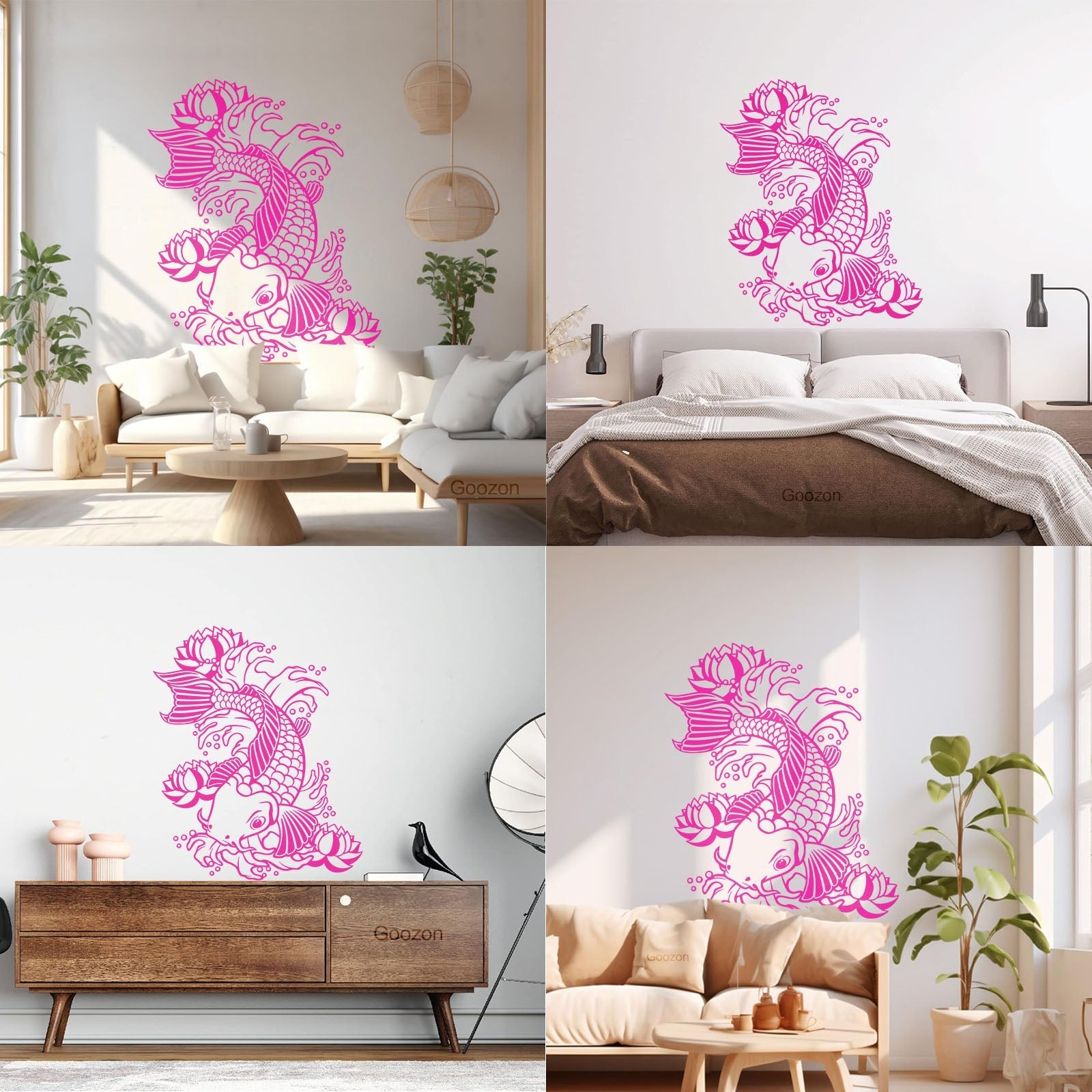Wall Vinyl Sticker Decor Koi Japanese Fish Water Lily Flowers Asian Style Art Decoration