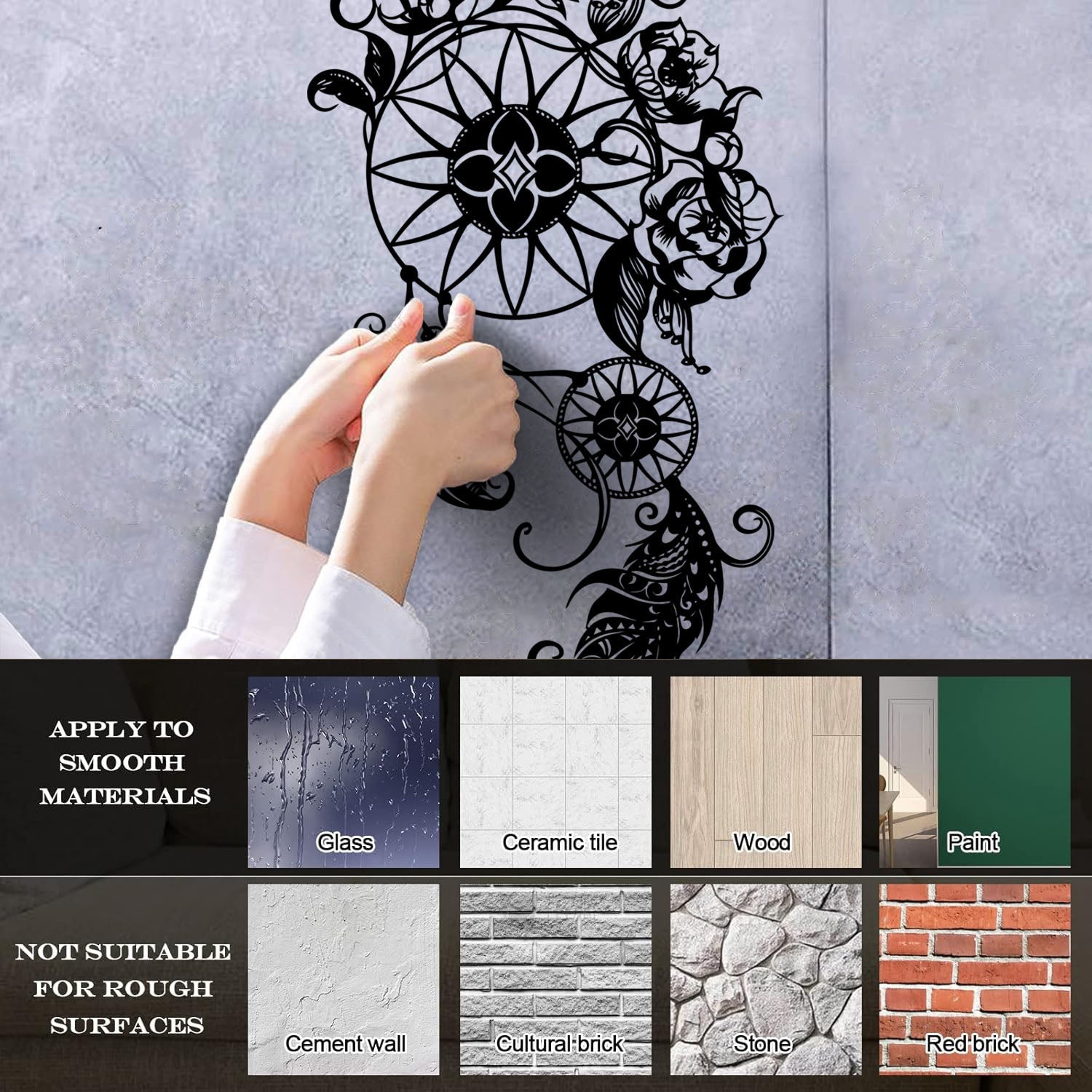 Gently press the decal area to secure it firmly to the wall.