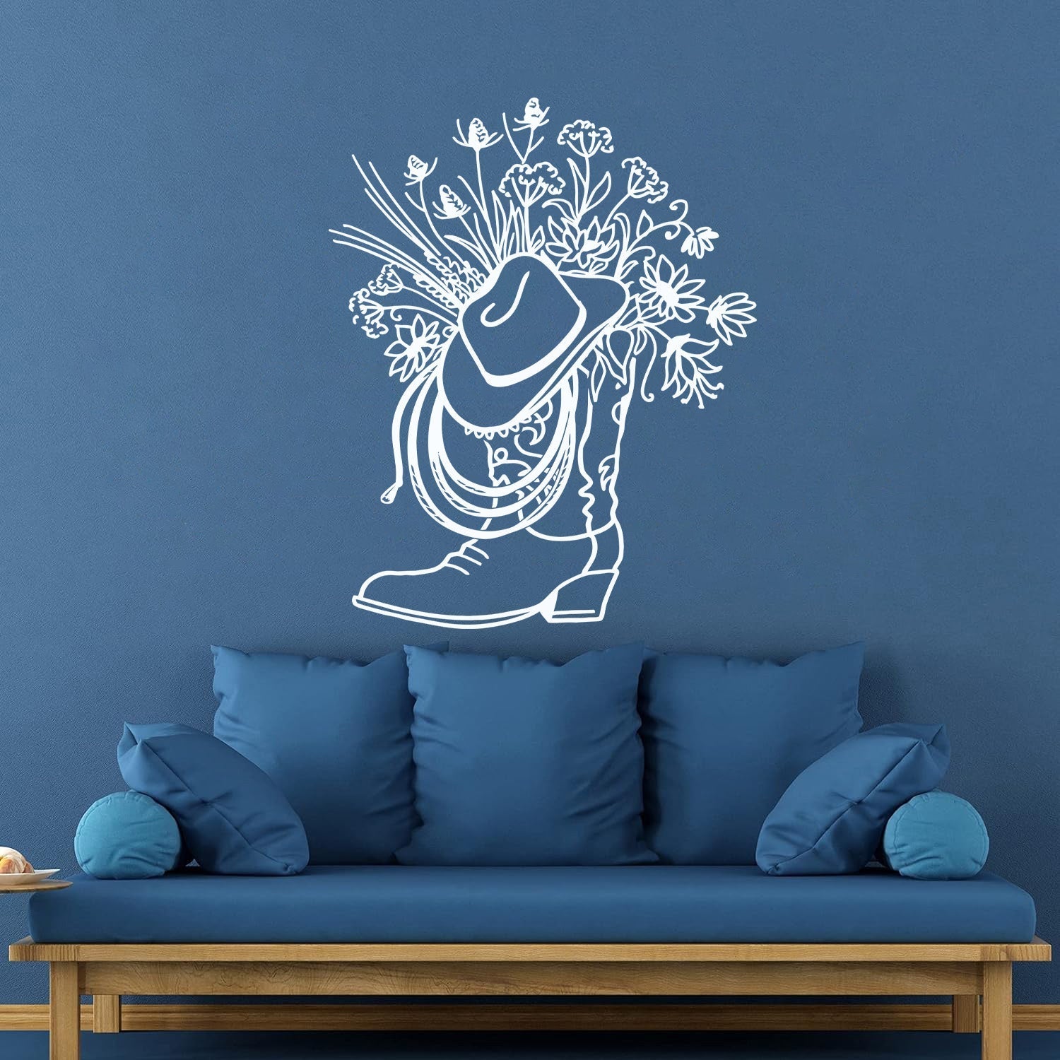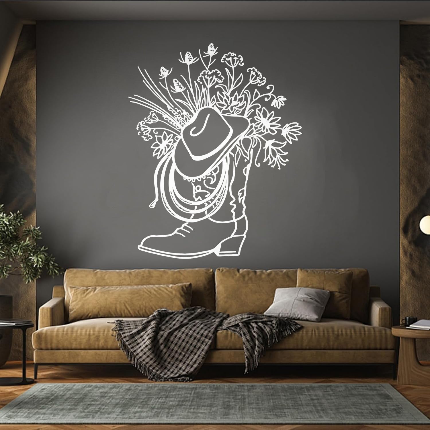 Vinyl Wall Stickers Cowboy Boot Hat With Square Vase Flowers Multi Color Selection
