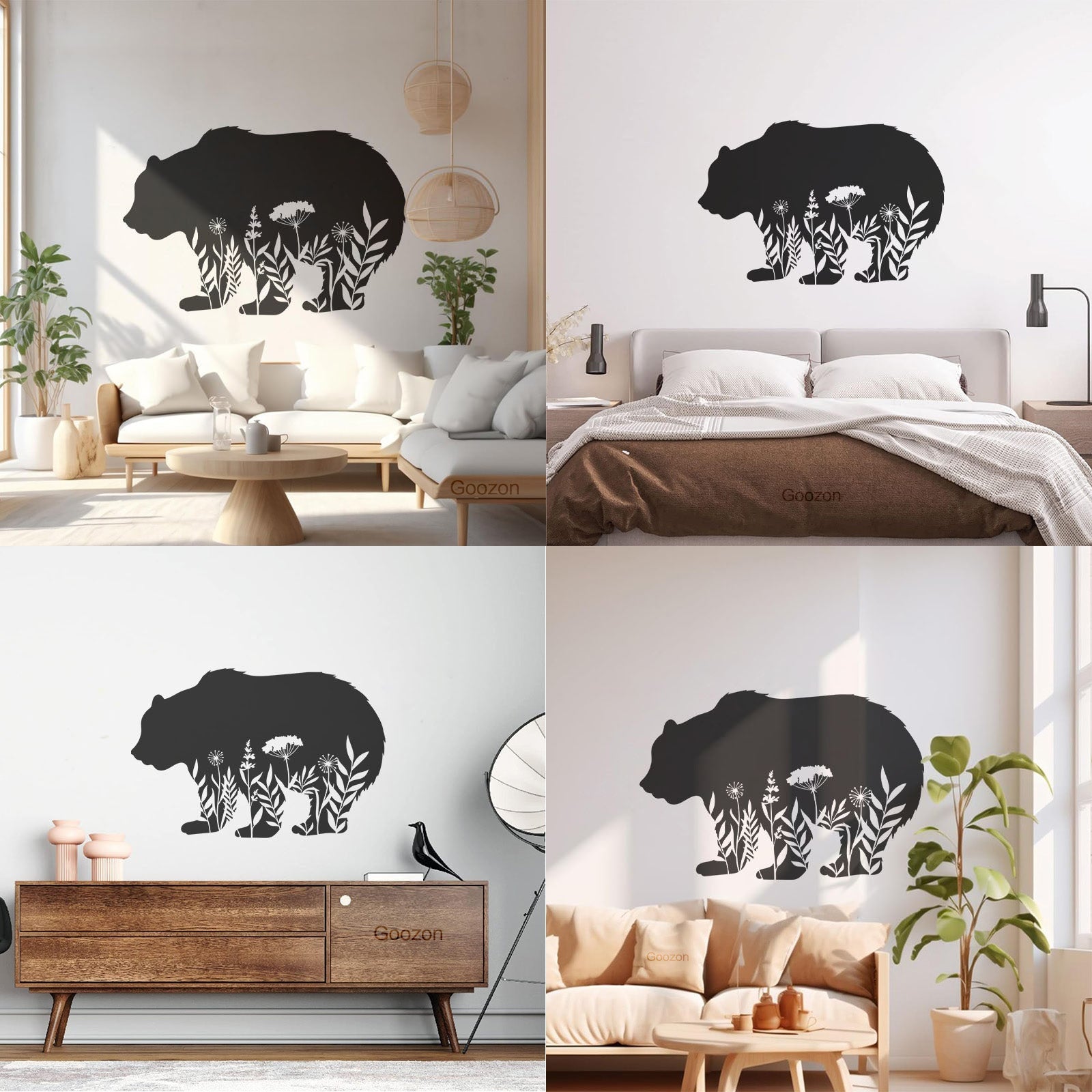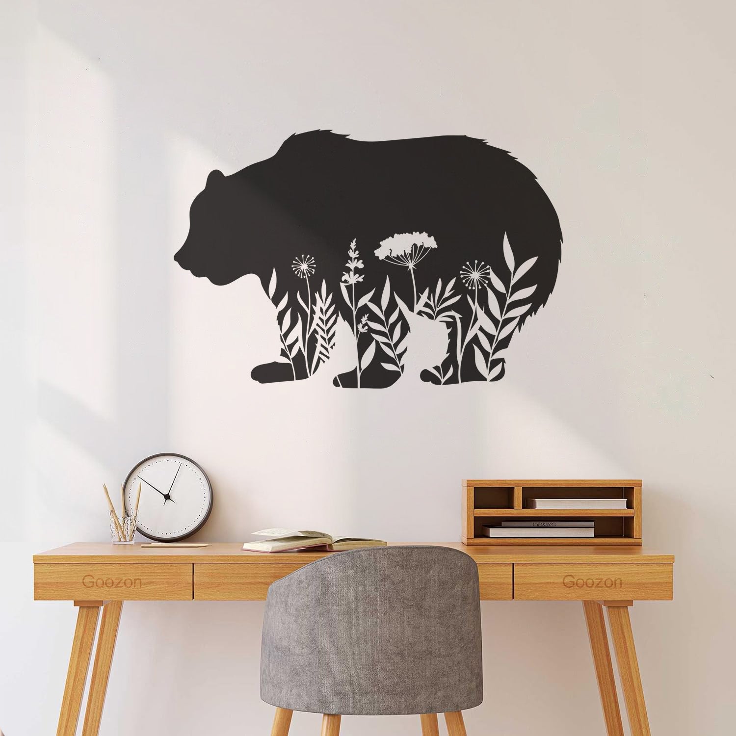 Wall Decals Pvc Floral Motif Bear Animal Predator Flowers Natural Personalized Customization