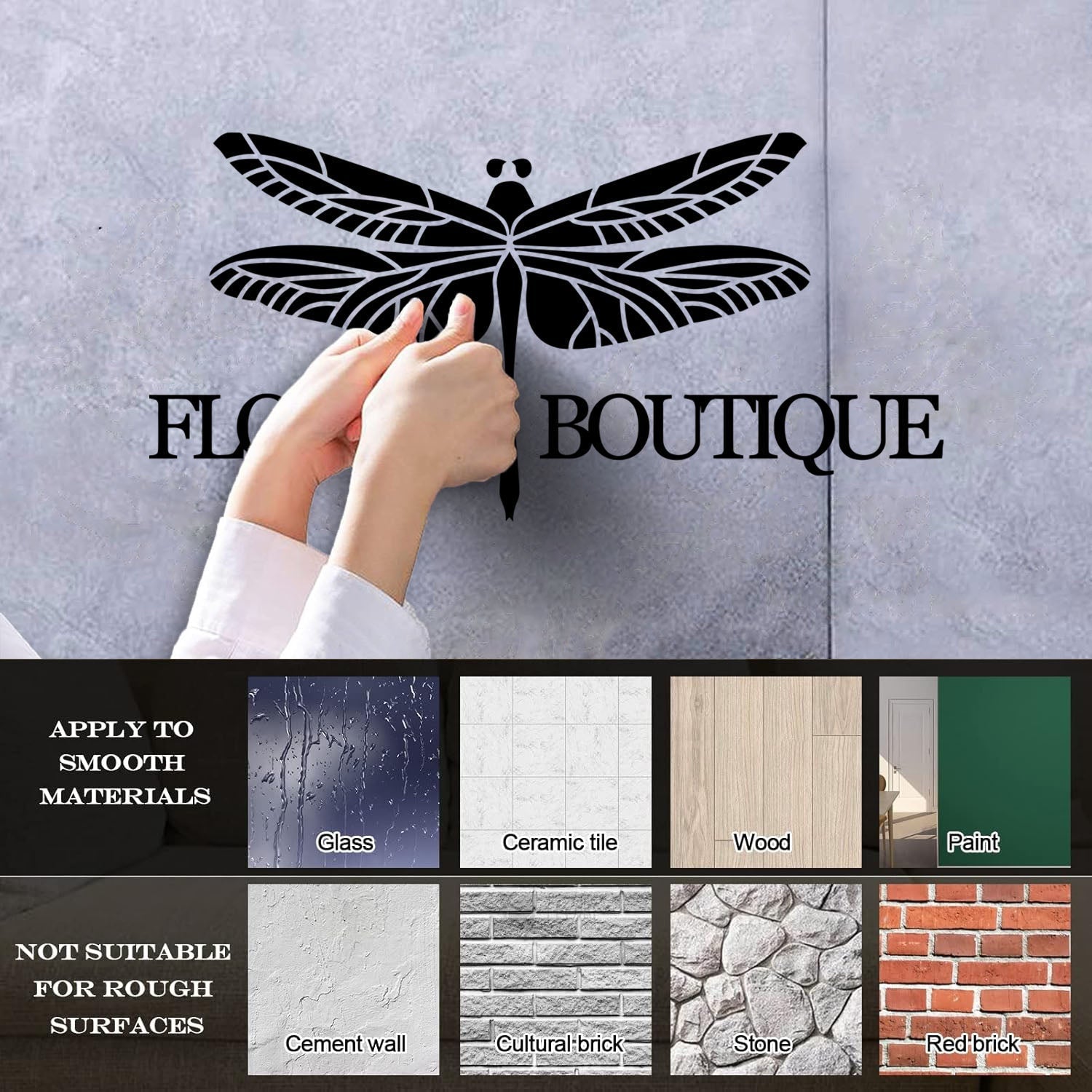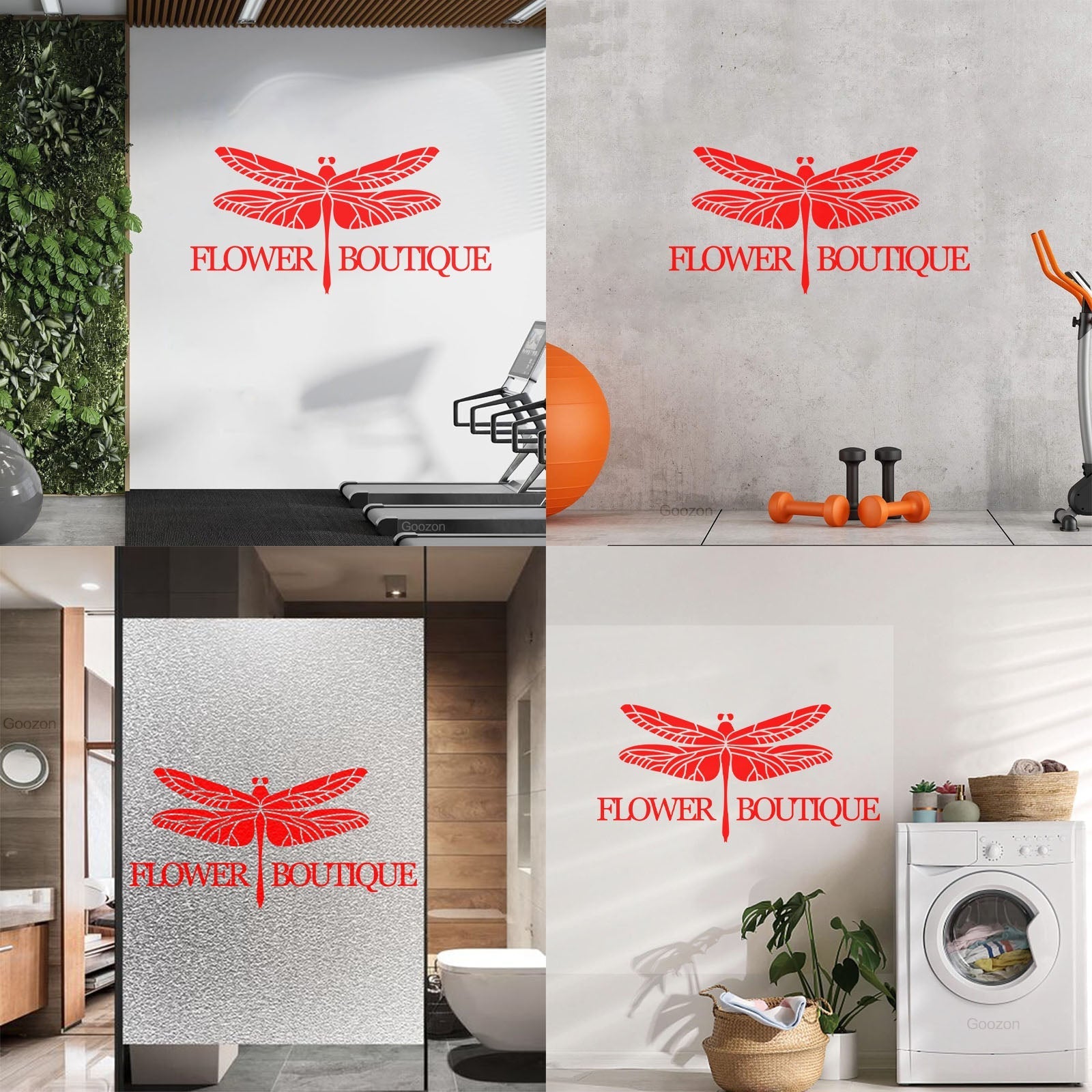 Engraving Decals Flower Boutique Logo Dragonfly Glass Stickers