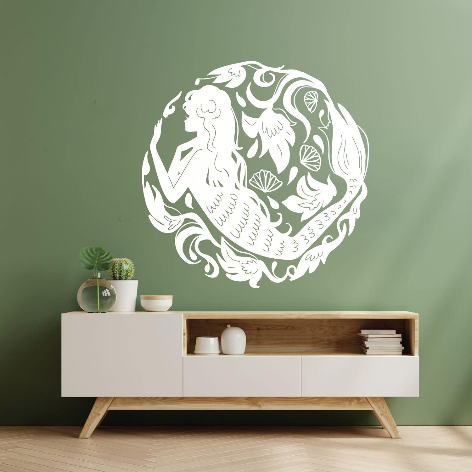 Mural And Wall Vinyl Decal Girl Teen Mermaid Flowers Sea Ocean Myth Waterproof