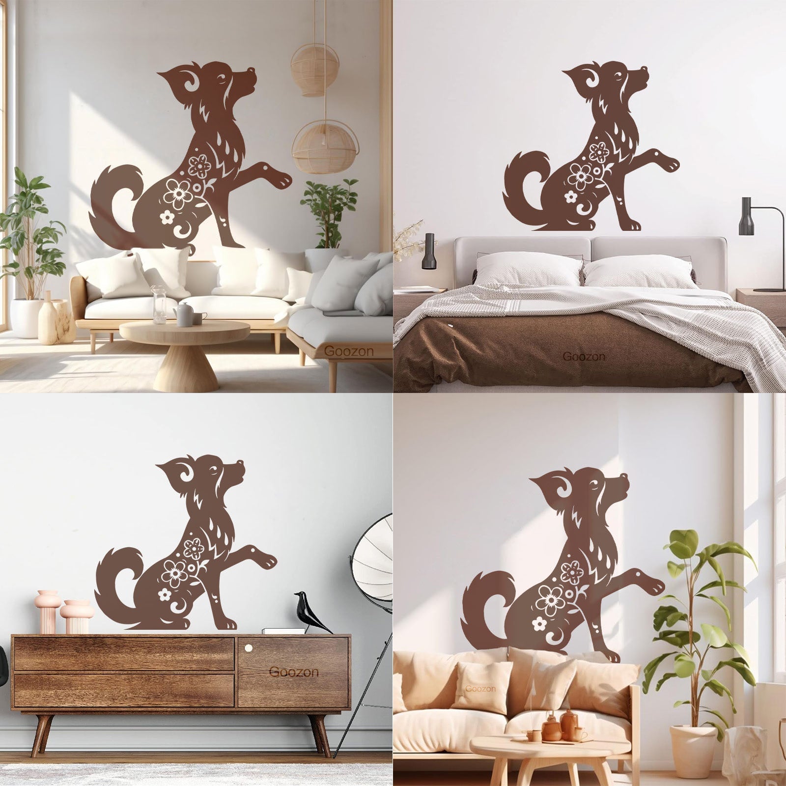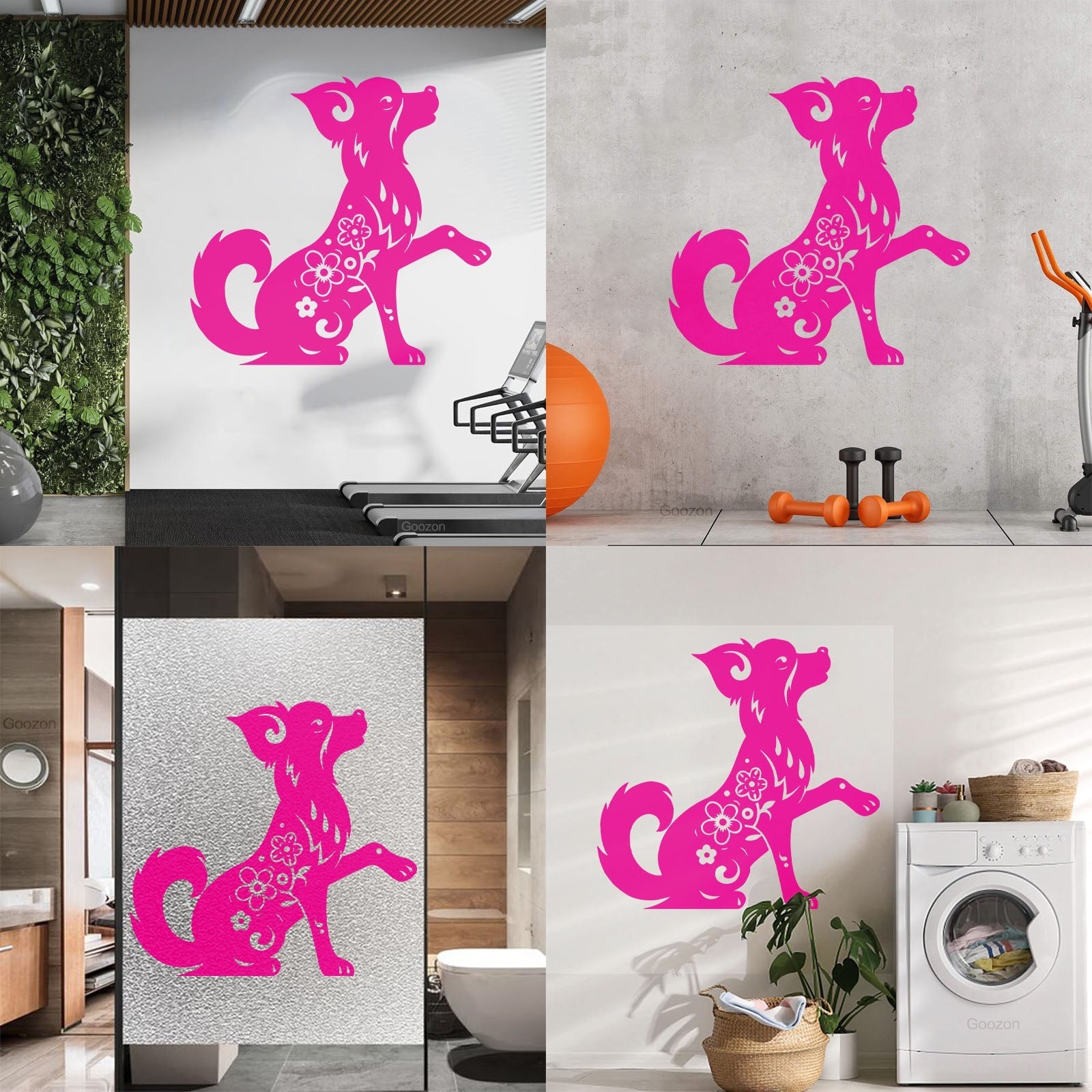 Fine Carving Stickers Horoscope Cartoon Dog Pet Flowers Ornament Waterproof