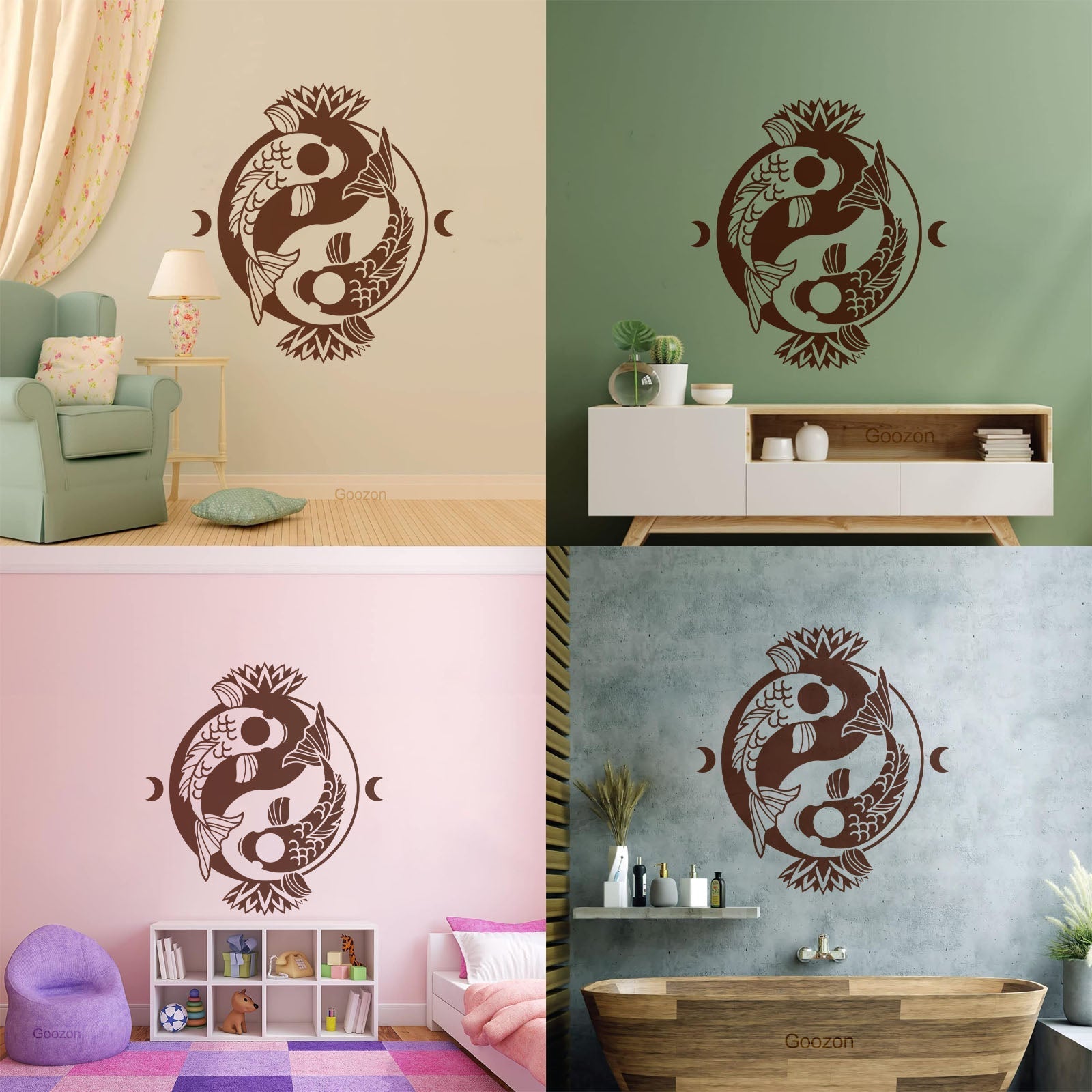 Engraving Stickers Koi Carp Yin Yang Symbol Buddhism Lotus Flower It Won'T Fall Off