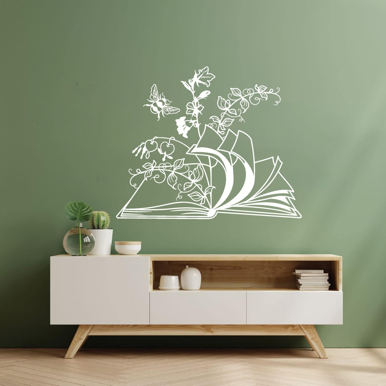 Open Book Floral Flower Library Book Store Wall Vinyl Sticker Decor Window Decals
