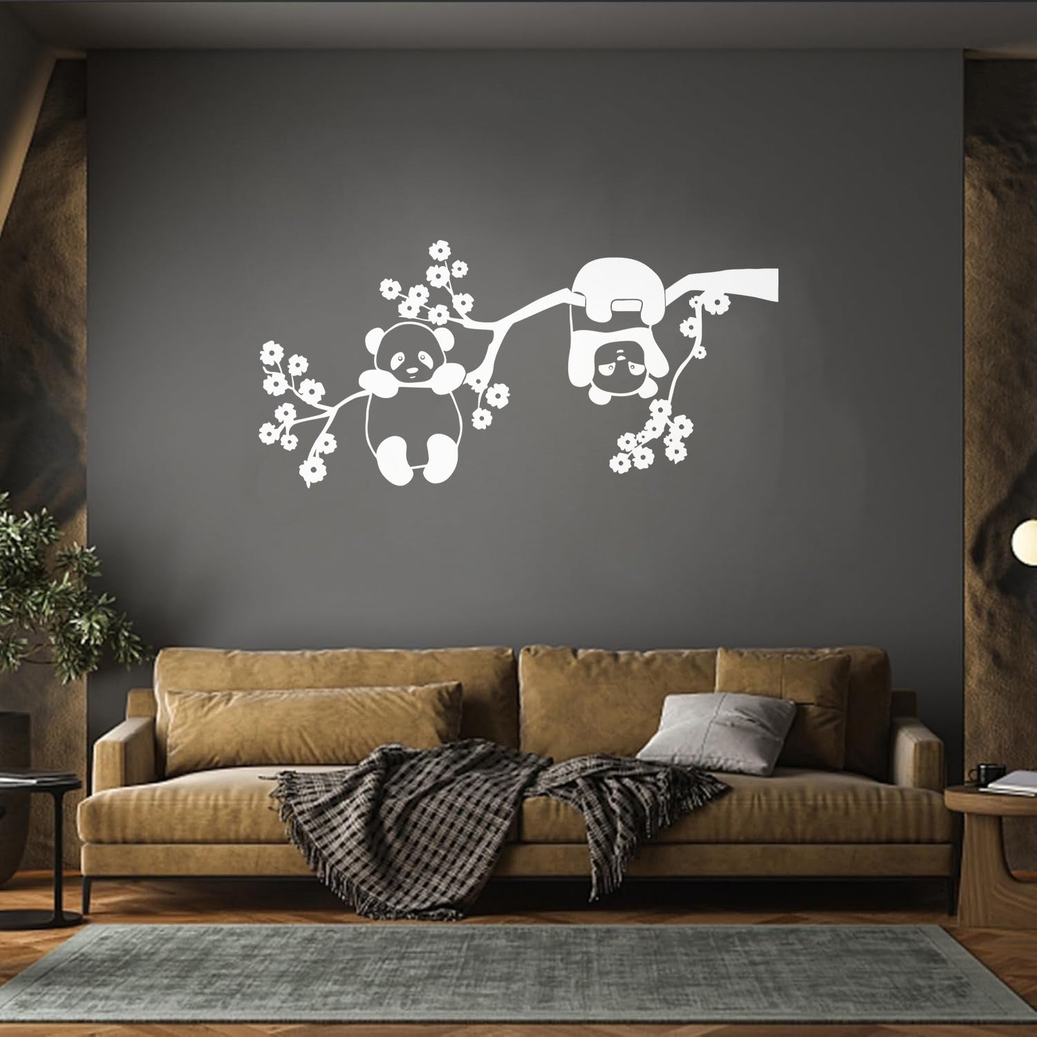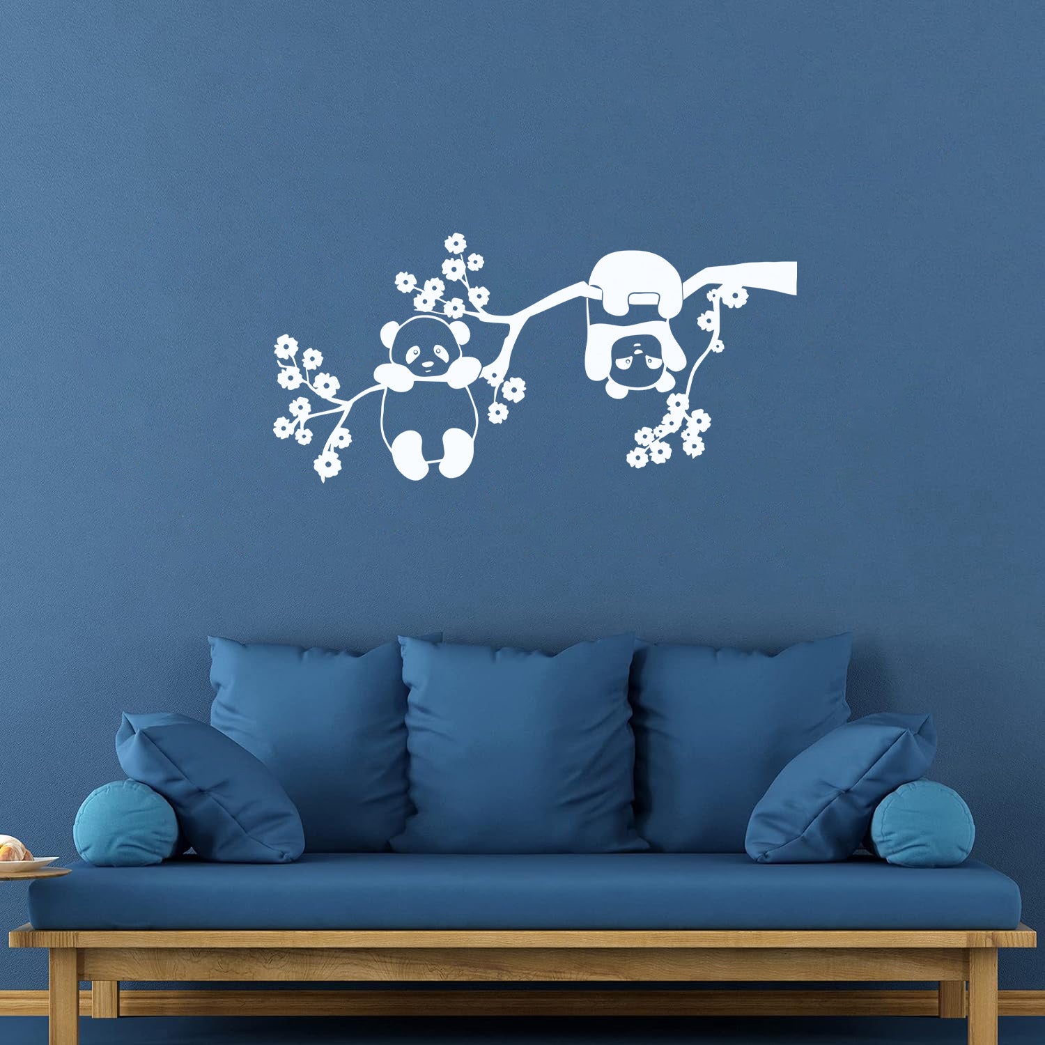 Panda Bears Cute Animals Zoo Tree Branch Flowers Wall Decals Pvc Multi Color Selection