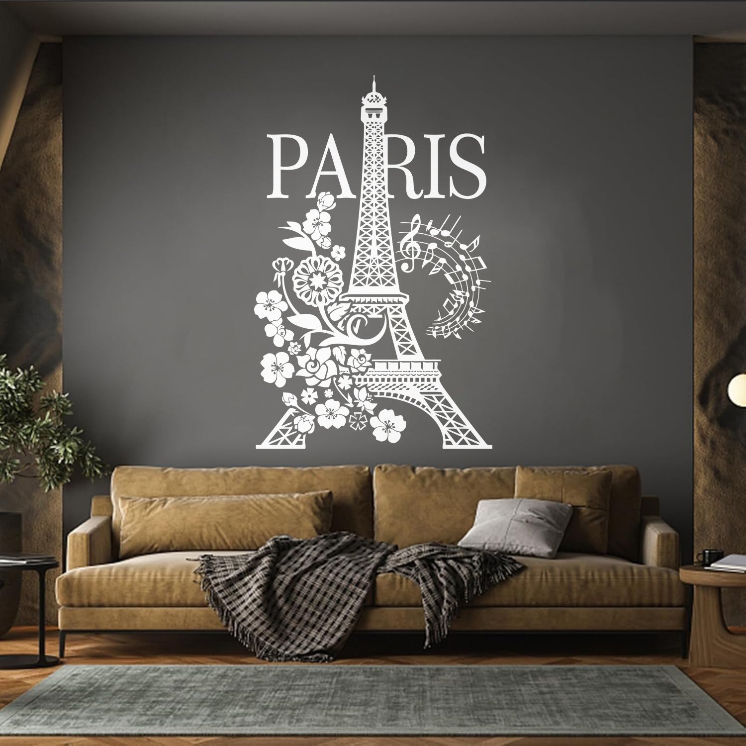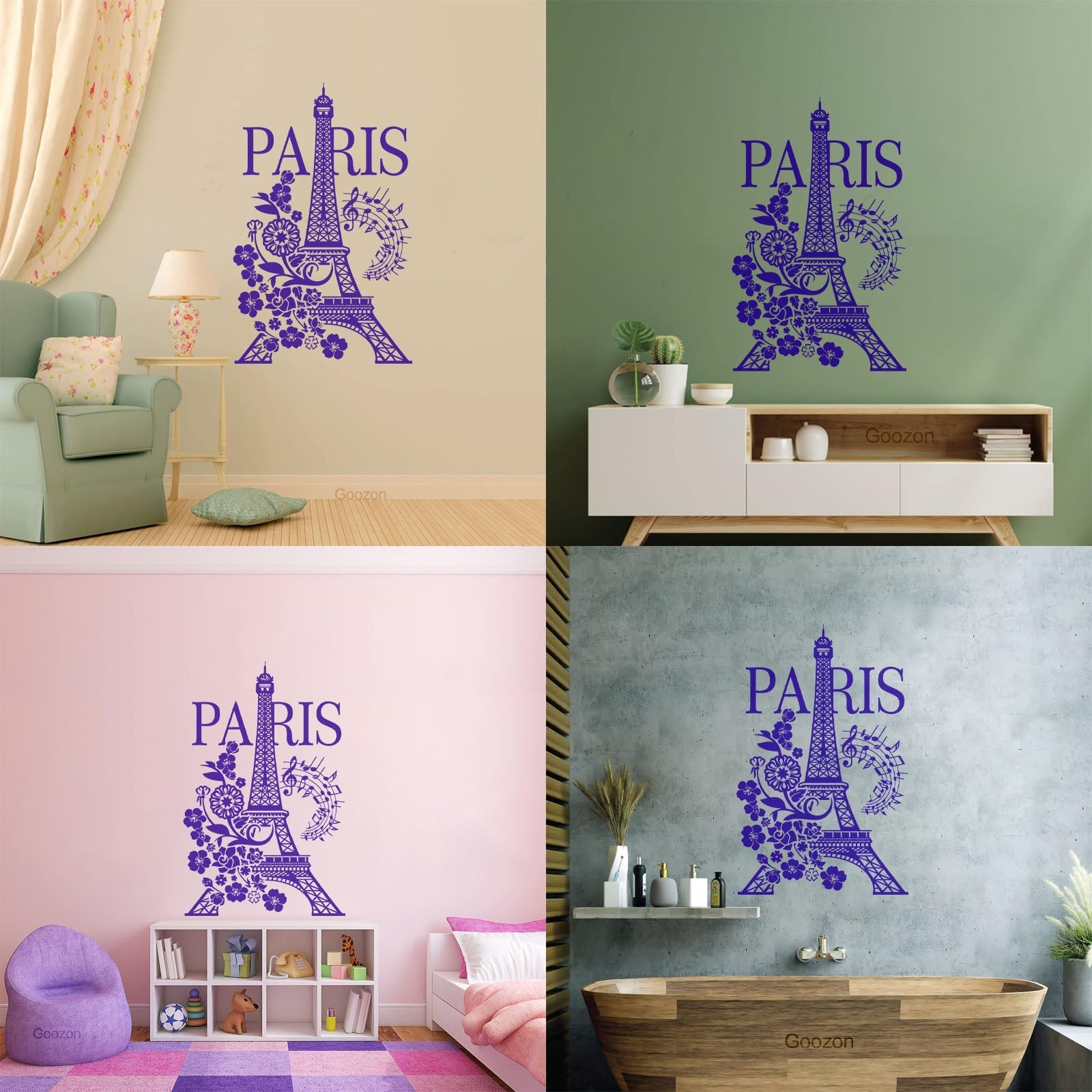 Wall Decals Paster Paper Paris Eiffel Tower Romantic Musical Notes Flowers Easy Installation