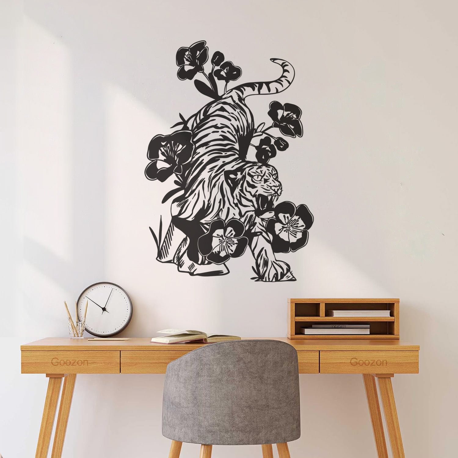Vinyl Wall Stickers Tattoo Tiger Predator Aggressive Animal Flowers Removable Without Leaving Glue