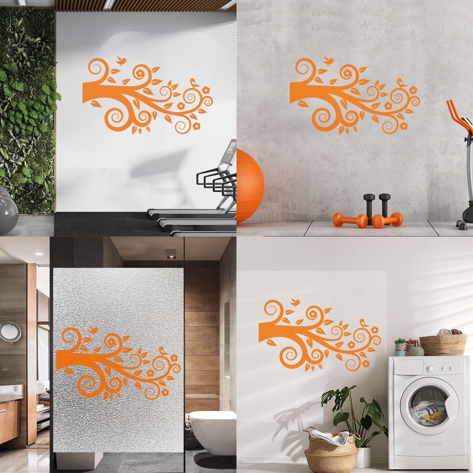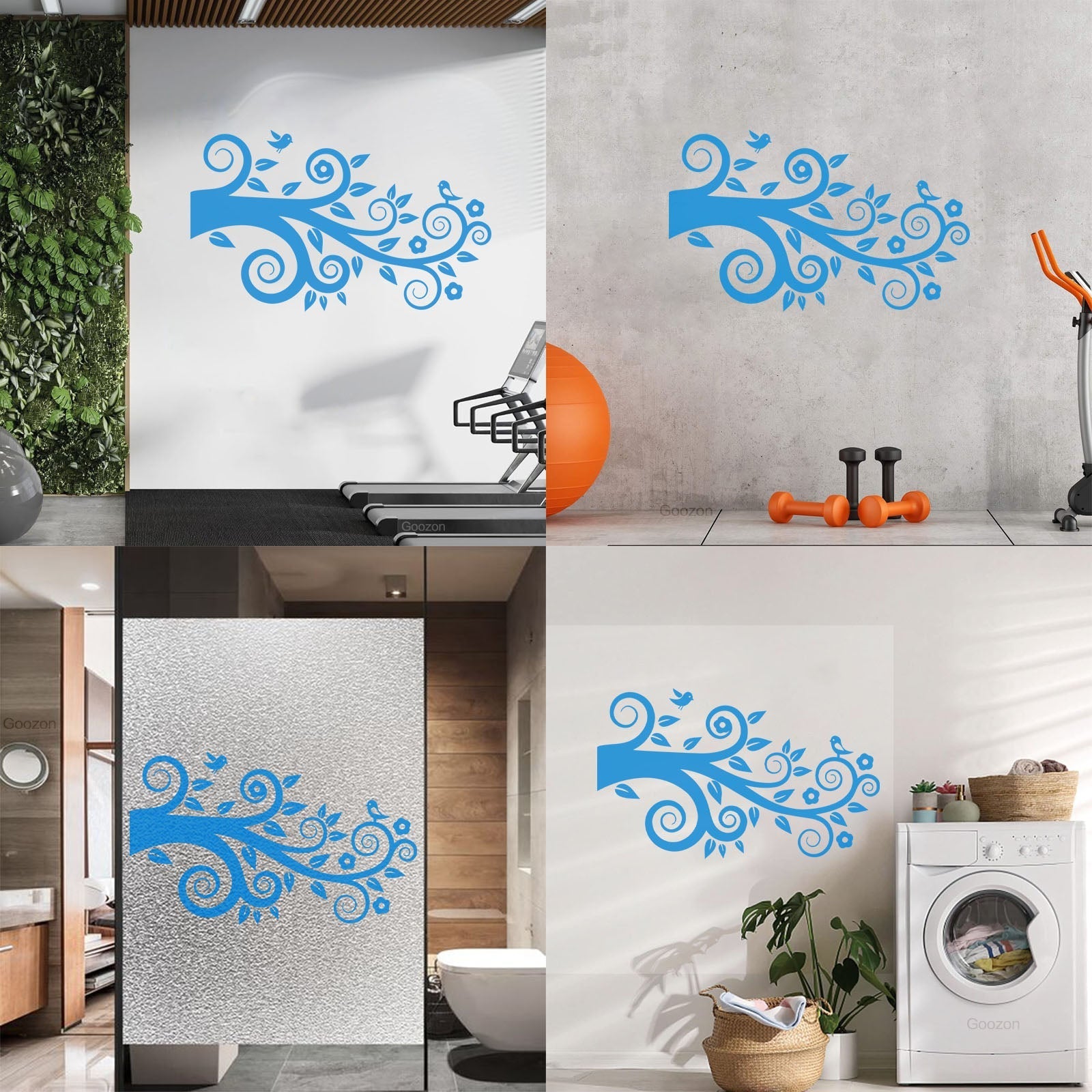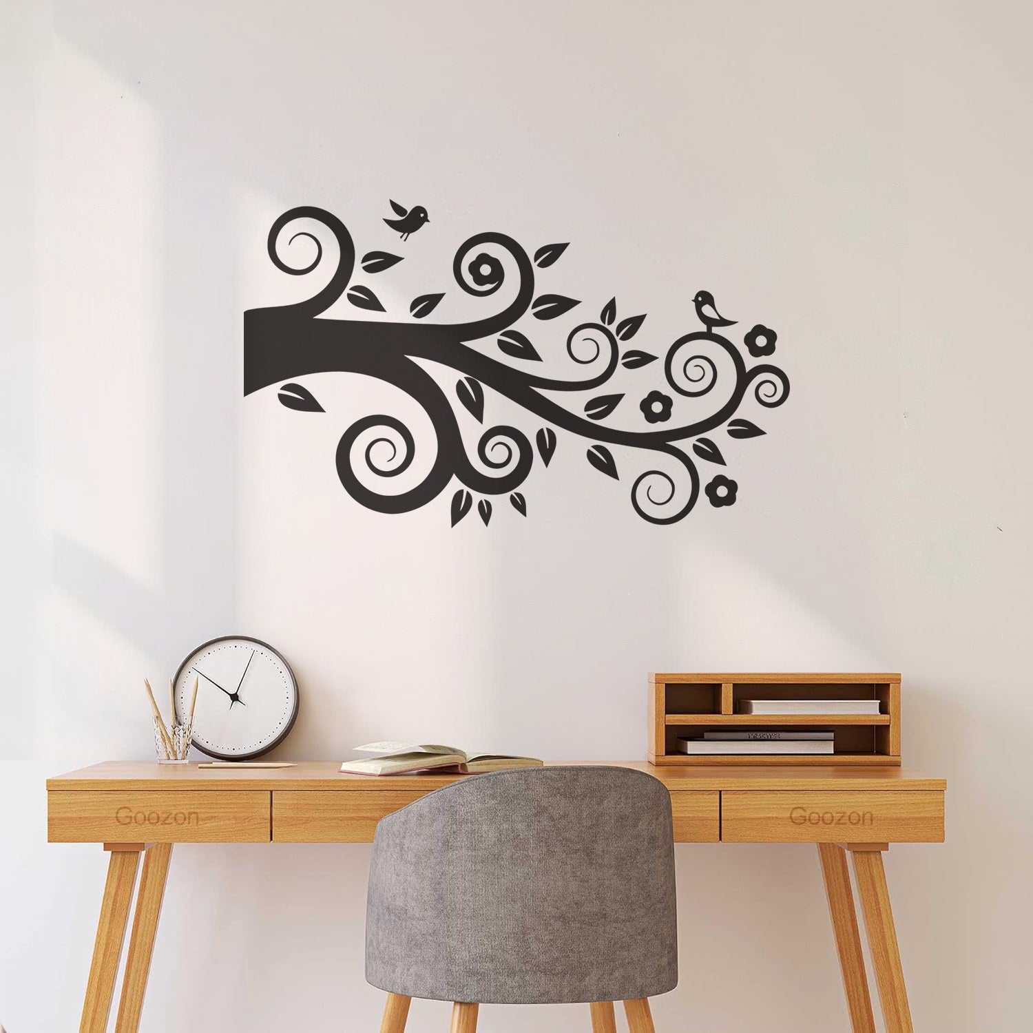 Tree Birds On Branch Flowers Romantic Wall Stickers Paster Paper Easy Installation