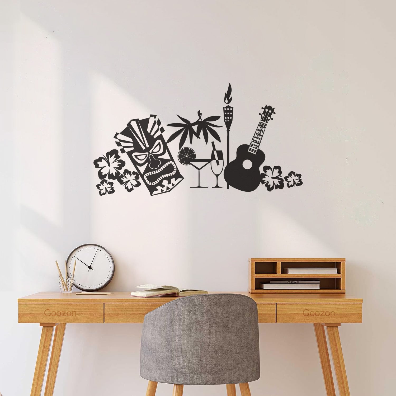 Wall Stickers Tropical Beach Style Guitar Mask Flowers Waterproof