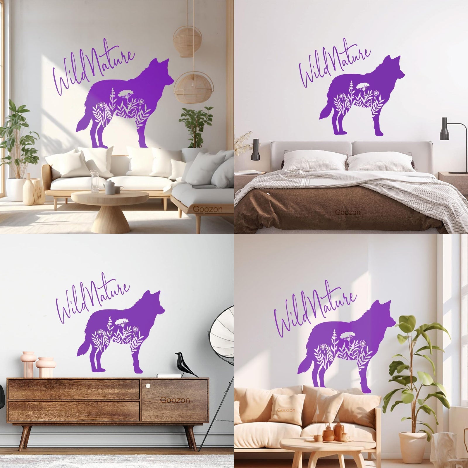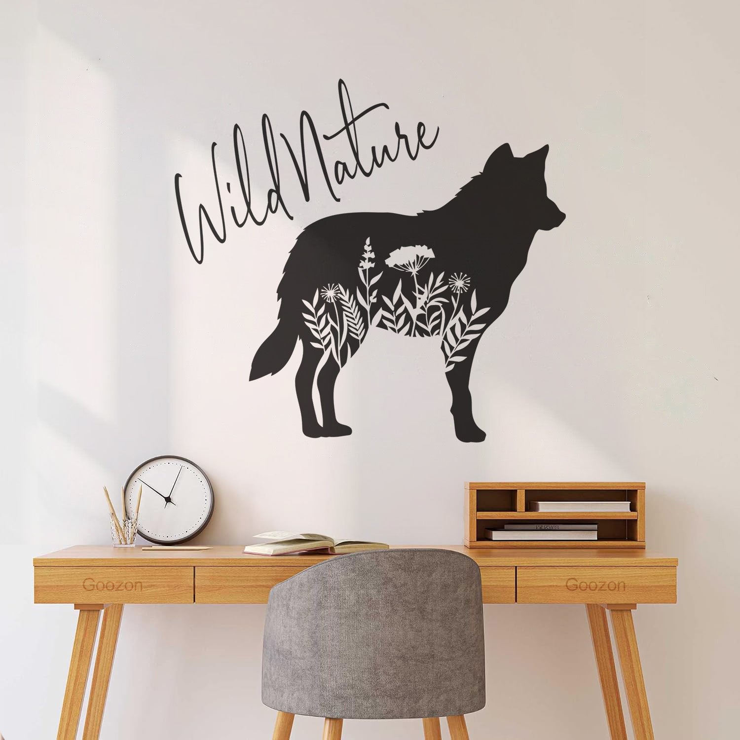 Wall Decals Paster Paper Wolf Animal Tribal Predator Flowers Wild Natural Window Decals