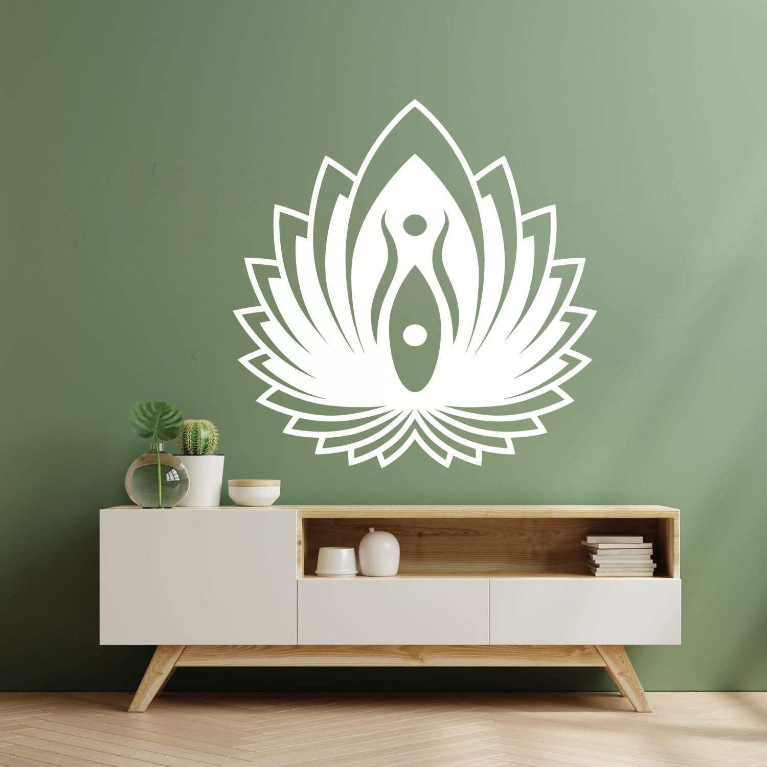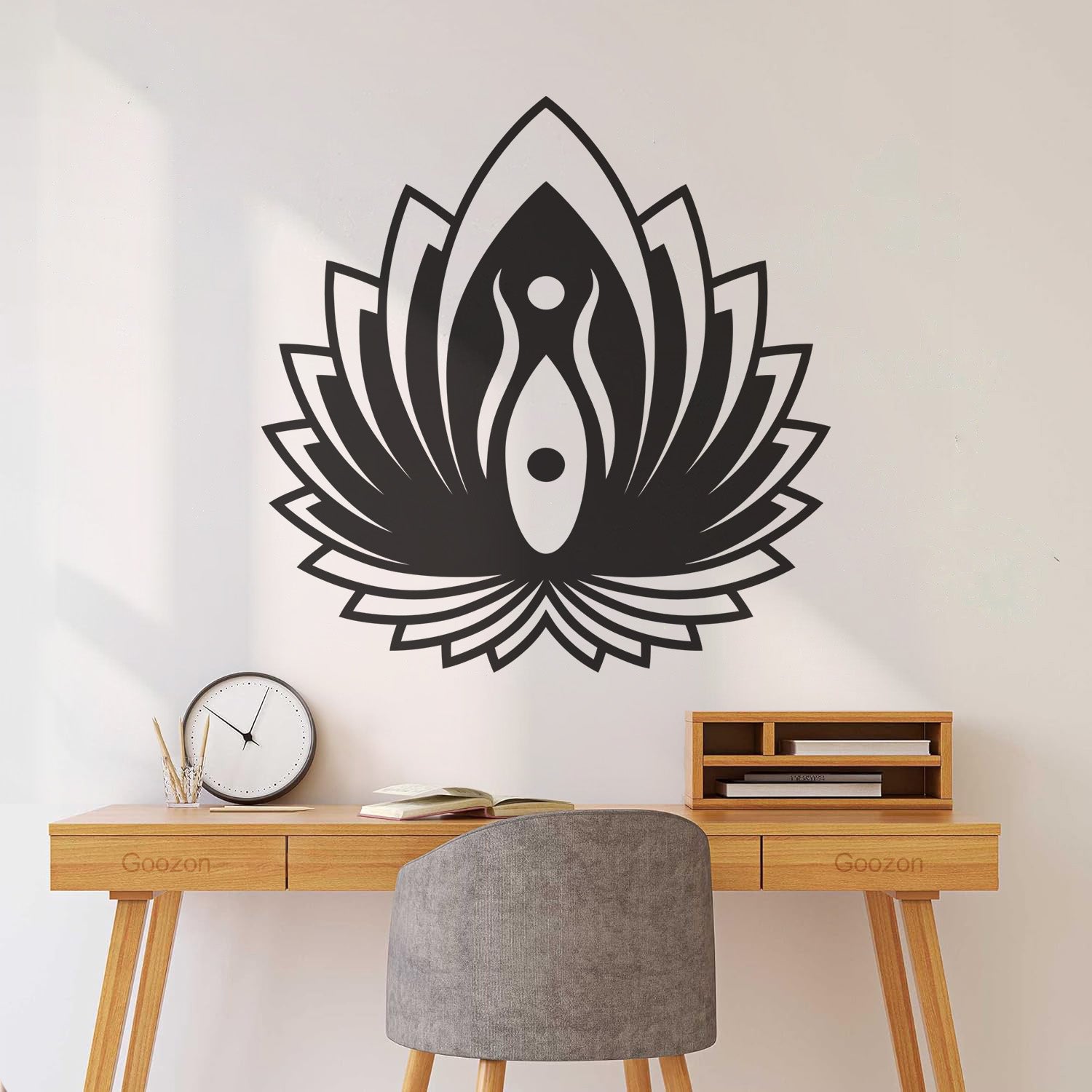Mural And Wall Vinyl Decal Yin Yang Symbol Lotus Flower Yoga Buddhism Self Adhesive